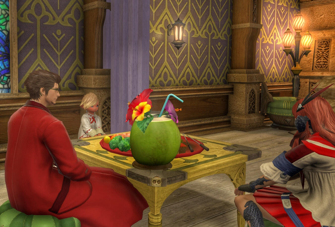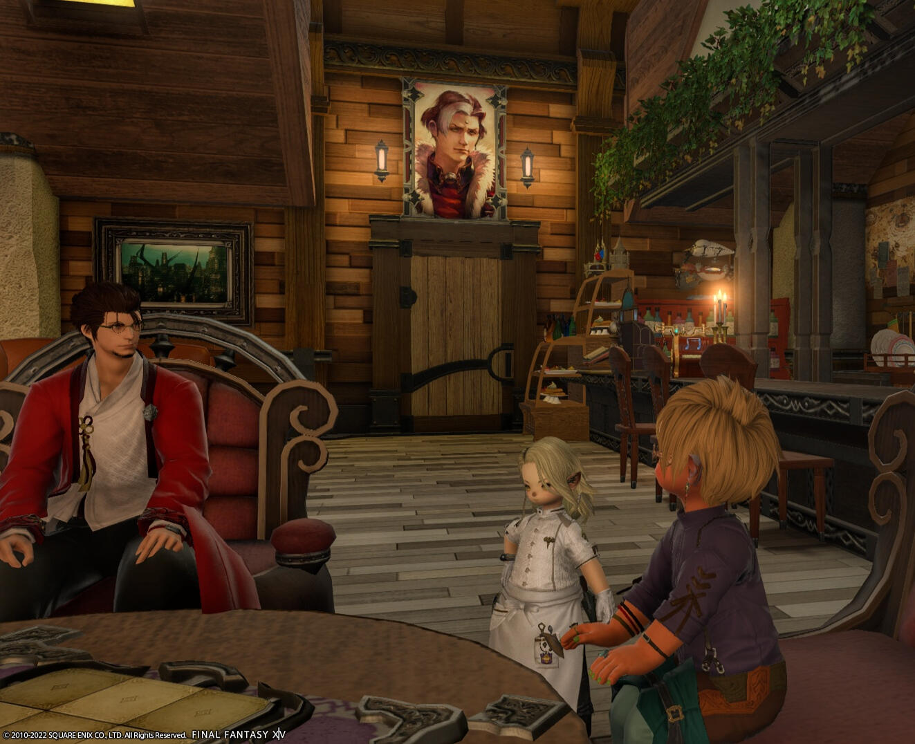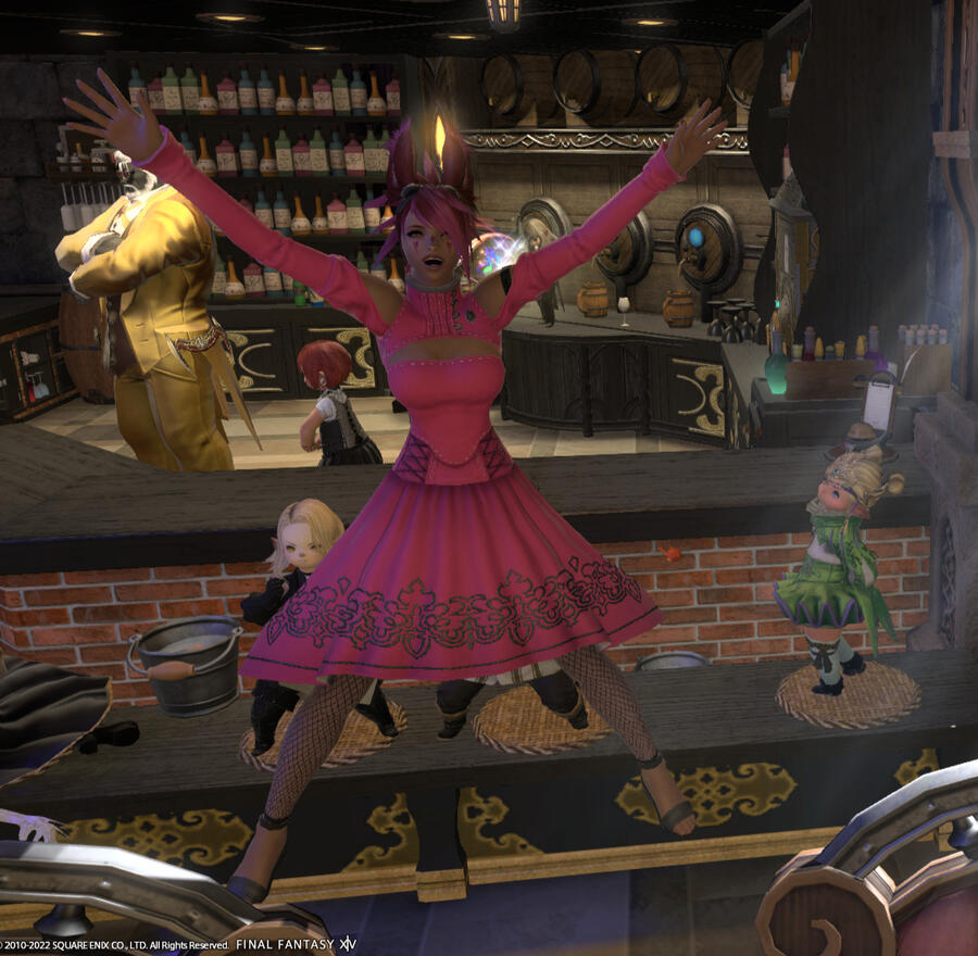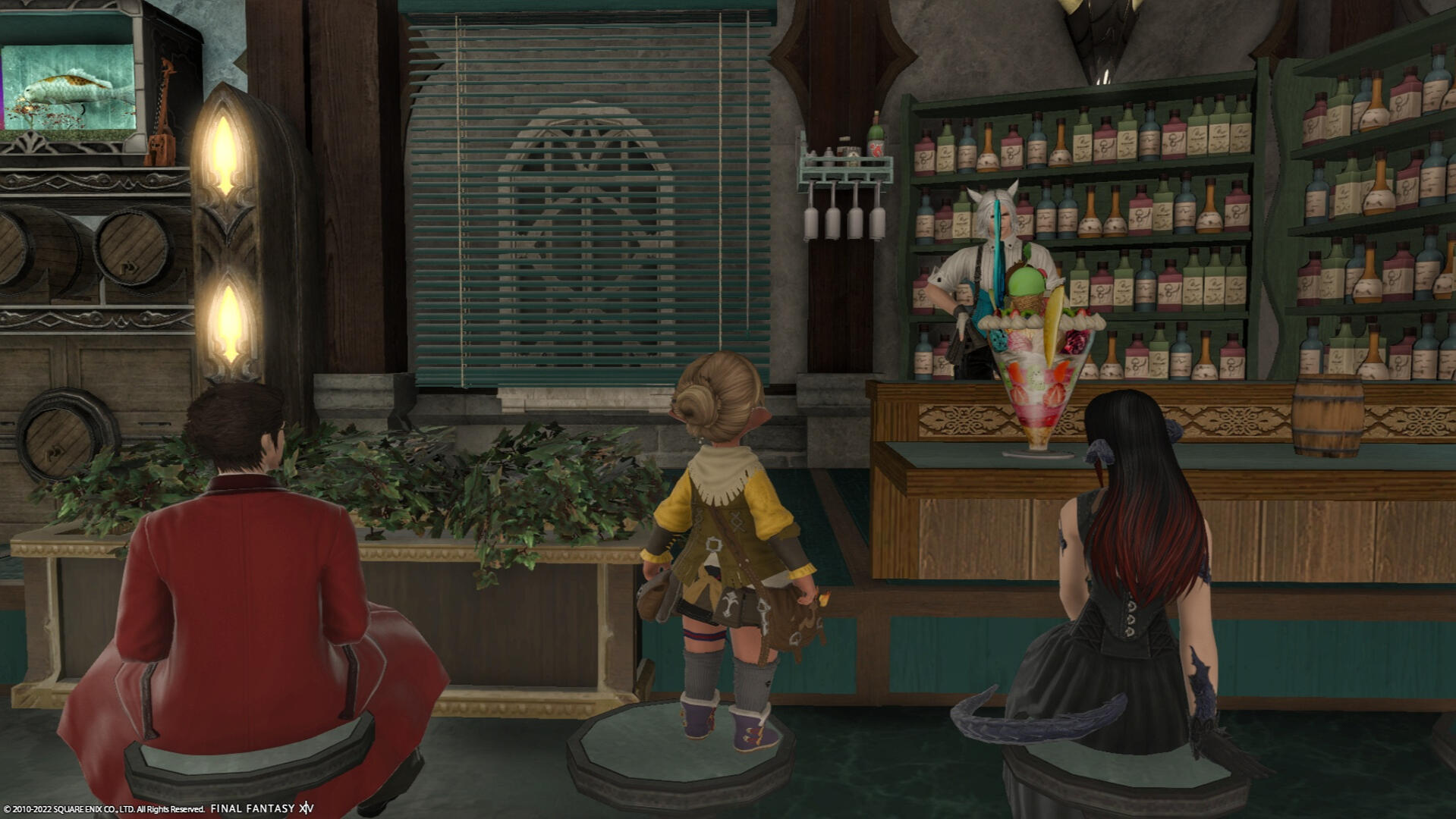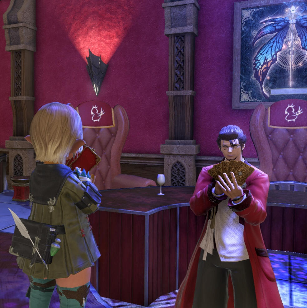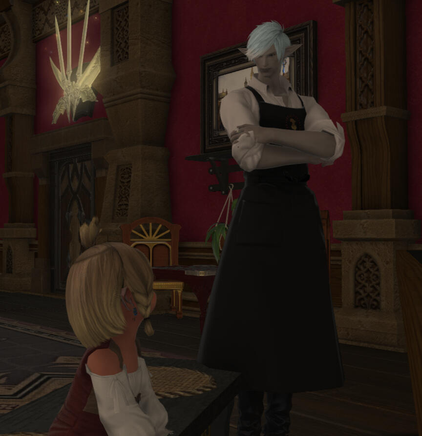Dearest Journal,Ya know how much I love the Amaurot Hostelry and its staff. Well, I took Red’s advice and invested in a venue I love to support! Not only did I drop 5,000,000 gil but I got to spend some much-needed time with friends. AND they’re gonna name a swiving drink after me! Or something like that. I’ll leave it up to the staff…