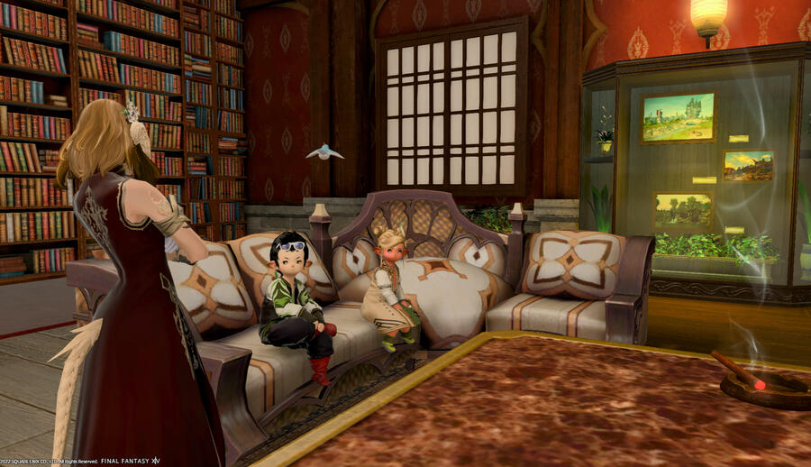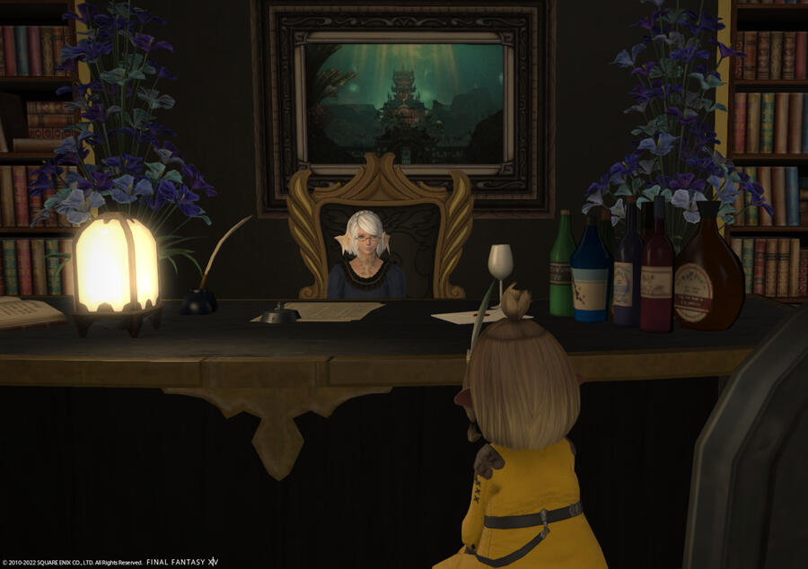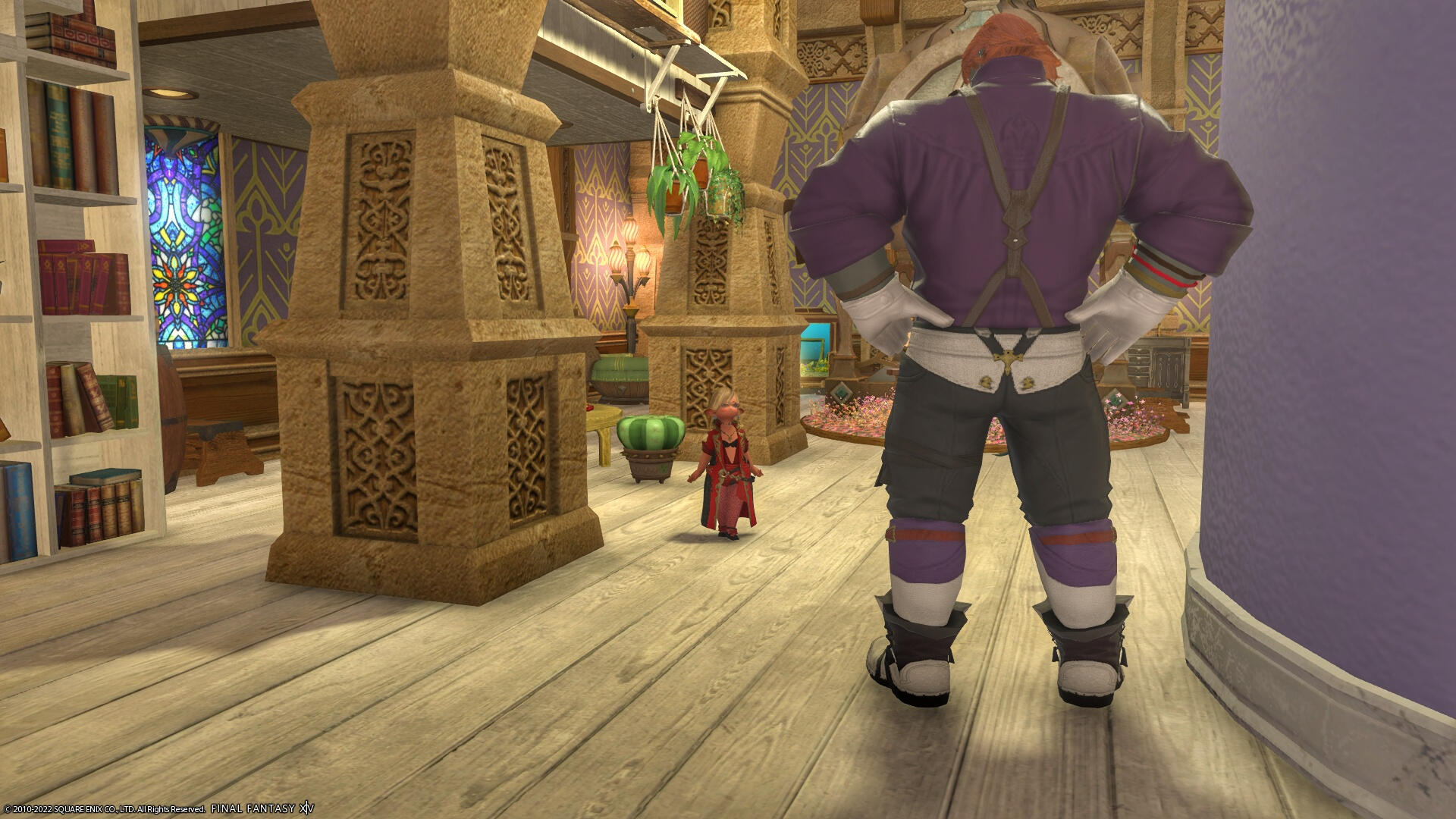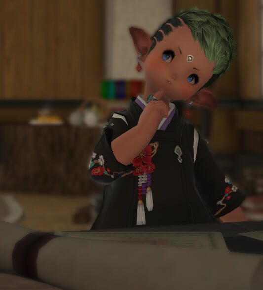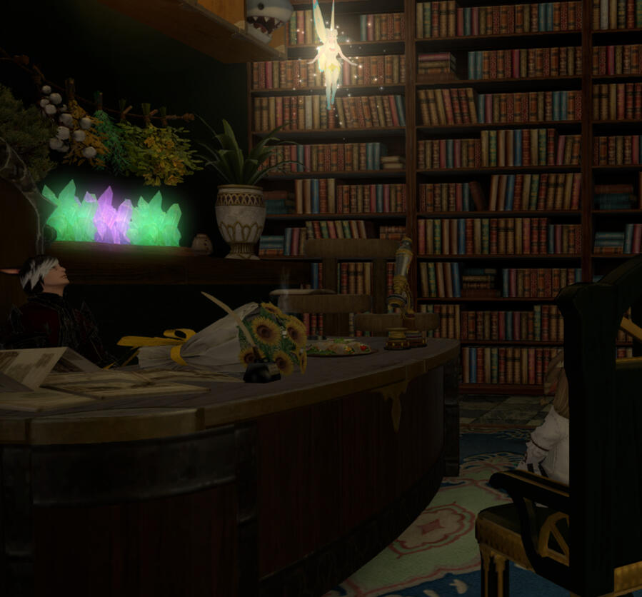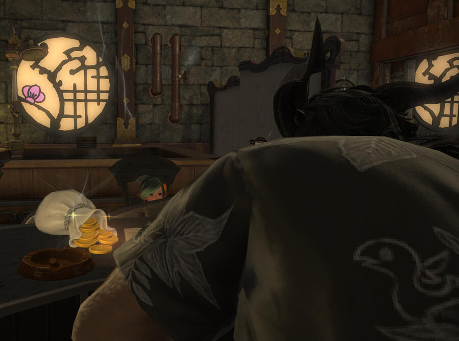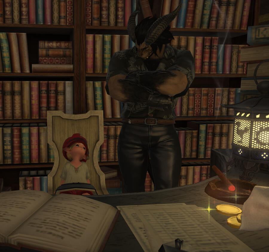 Laliho, Journal!This morn' I stopped at a local clothier and purchased an outfit for Factory. The attendant said it was quite fashionable and should be well-received by our guests. We shall see. I do wonder if Huck will take notice...Anyroad, I digress! I received a ping on my Linkshell from Kiladus, the detective from the CCB. He was at his office and invited me over so we may fulfill the terms of our contract. I rushed back to the Embassy, nearly emptied my coffers of all my gil, and suddenly found myself near the apartments of Kugane. By the power of aether? Or simply by the power of Detective Dayfield?After marveling at the sunset that began to creep beneath the horizon, I entered the apartment lobby. The attendant was adamant that they could not divulge the apartment number of the Counter Crime Bureau's office, for sake of privacy. Ugh! Luckily, Detective Dayfield quickly answered my hail on the linkshell and I found my way to Suite 57.There he was, comfortably leaning on a room divider, sportin' a rather (dare I say) gaudy shirt decorated in printed palm fronds. The office was dimly lit, music quietly flowed from the table orchestration (although I did not recognize the tune), and rows upon rows of books lined the wall. A very large stack on his desk, as well as a smattering of letters and envelopes. And the reek of cigar smoke filled the air: a thick whisp o'smoke came from a small dish that house the offending sausage on this desk. I also noticed an exorbitant amount of liquor bottles around; some on his desk, others safely stored behind a glass cabinet.After polite greetings, we sat to get down to brass tacks. The business that brought me there: payment!Speaking of gil, can you believe the Hrothgar has a large sack of it just laying there, spilled open, upon his desk? I made a snide remark about it's safety and he challenged any to dare try to take it. I think I even heard him growl!! Again, I digress. I let him know I still had not been able to reach the artist, Sani, but a deal was a deal and I readily paid him the agreed-upon 100,000 gil for his investigation and location services.Conversation swayed to Factory and how our business was doing. I advised him that the prices he ascertained have been serving us well, and we even have a paid employee to help serve the lobby and any other needs. He seemed pleased with himself, and will one night join us for libations. Although, alas, not this eve as he had obligations elsewhere. I did hand him the one flyer I had crushed into my pocket and watched him carefully smooth it, peruse the menu, and put it safely in his drawer. The Sea Hag appears to have whet his appetite.At one point, he was enjoying the cigar and turned it around and offered me a - I think he called it a drag? I'd never tried it before, so why not? Holy Popotoes! It was awful! Burning, thick, oaky smoke invaded my mouth, scoured my throat, and filled my lungs. All I could do was cough, shake my head, and pass it back to him as tears ran down my cheeks. "Not for me," I was able to manage between coughs. That roused a hearty laugh from the Detective.As he finished laughing, he mentioned how his inherent heightened sense of taste and smell was both a blessing and a curse. I tried to stealthily sniff beneath my arm (but I fear he caught a glance), I honestly do not recall if I powdered after my morning wash. Anyroad, back to his heightened sense of scents! He boasted he could guess what I ate for breakfast. Even though I tried my best to hold my breath during the moment his nostrils flared, he was able to accurately identify the sticky rice balls and fried popotoes I devoured earlier! Uncanny! Unbelievable!But that led to a short conversation of my favorite topic: popotoes! Any time I get a chance to actually sit down and discuss the beautiful vegetable, I get a little too excited.Oddly enough, that brought our conversation to a close. He had things to do. I had never-ending errands to attend. And our business, for now, has been concluded.Upon standing from the chair, I saw the room divider hid a rather large tub. One that could fit many folks! That, in combination with the amount of liquor bottles, truly made me wonder what this man did during his off-time. Either way, his office could use a bit of tidying up. I now regret not leaving him my advert card for my services. Mayhaps I will send one via Delivery Moogle.
