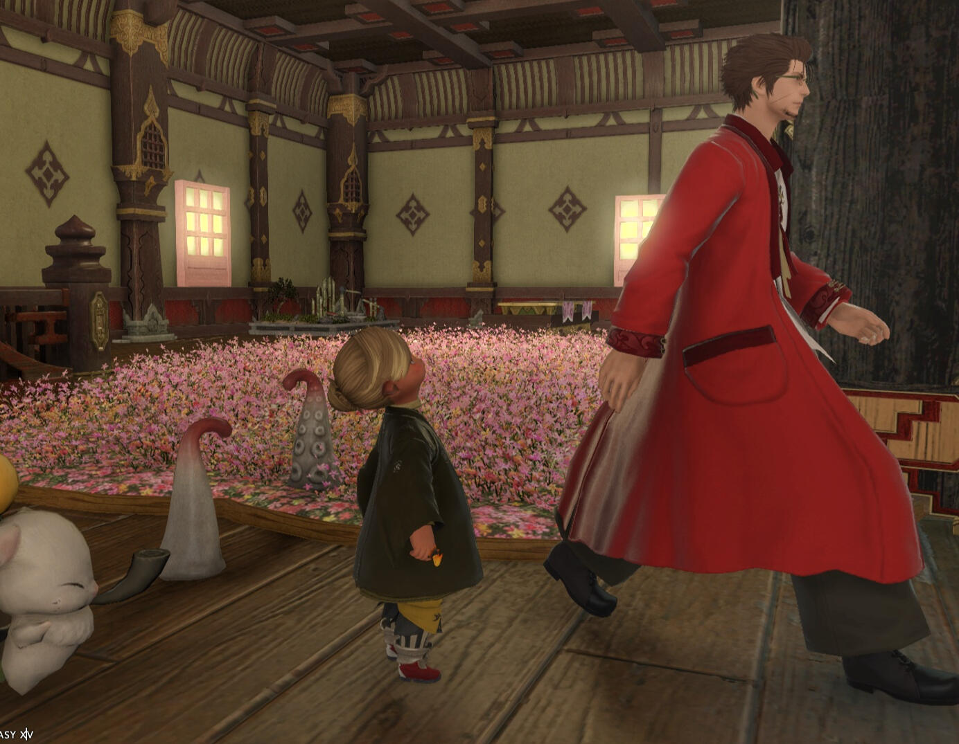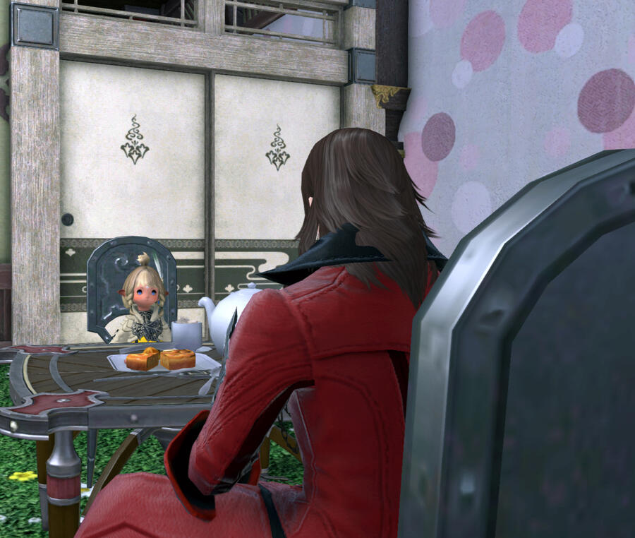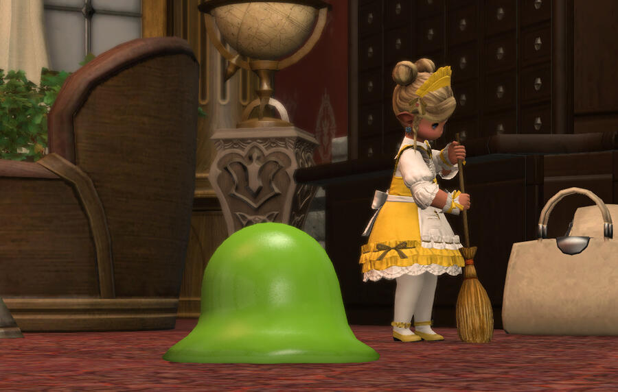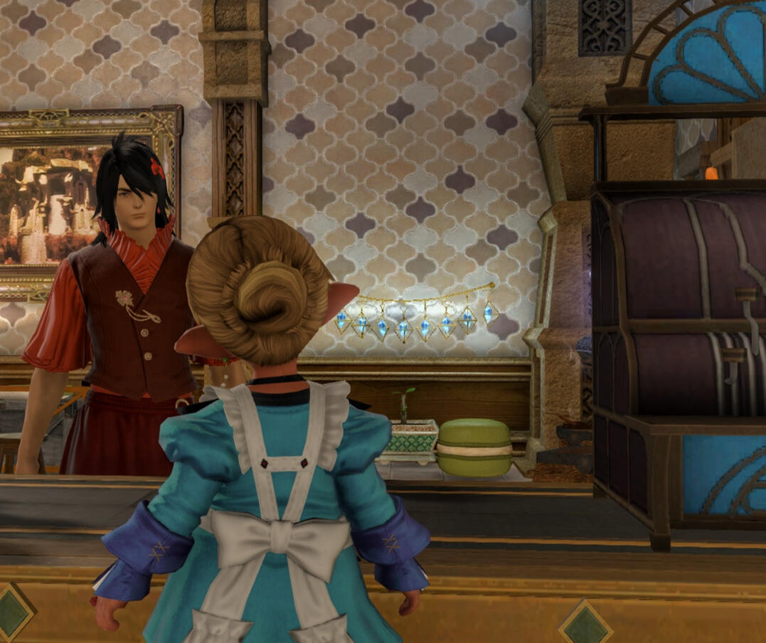 I have a job, dearest Journal! Hired by upper echelon! A rich man!I can't - I still can't think of it without shaking.I had stepped foot into my apartment's lobby in Goblet, exchanged a bit o'coin for two small sacks of potting soil, and turned to see Mr. Alexander Rho standing there beside me.You remember Mr. Rho; correct? The tall handsome dealer at the casino Nyx, Altanai, and I had recently visited. And we ran into him yet again at House of Virtuethat same eve?I asked what had brought him to my side o'the world and he said 'twas I. I! My stomach flip-flopped. I daresay I blushed. And he looked fetching in that dalamud red coat.Well, I apparently had made an impression! Nay, not that kind of impression: one of a business sense!We exchanged cordial hellos, I inquired as to the health of Madame Freyja (she's on the mend), and he announced he had a business proposition.I invited him into my wee office. My first client to sit upon the stools in my new apartment office! I may need to consider something more comfortable. Although perfect for one as short as I, it looked awkward for his stature...He explained that he had found my wee business card and was in dire need of assistance. His fiance is with child and Mr. Rho would like assistance with cleaning their house (he also owns an apartment!) in Shirogane as well as laundry, greenskeeping, and running errands. Apparently, I'd also be in charge of tending to and feeding his pet, Suckfish. Oh, and he let it slip that his beloved may also have a hankerin' for cheese. I must needs do some digging in the Herald for local - what's the word? Cheeseries?