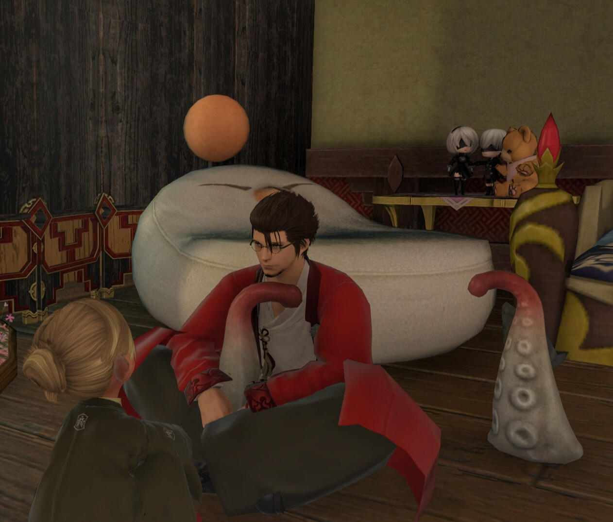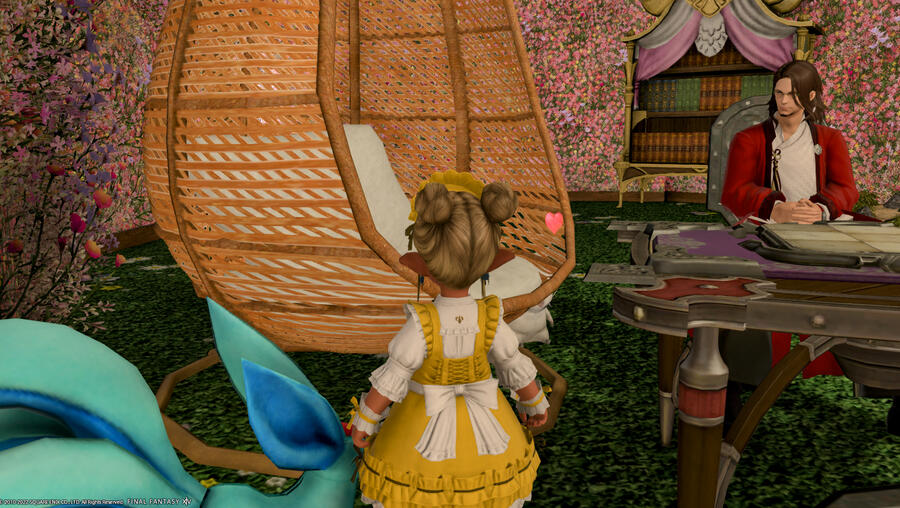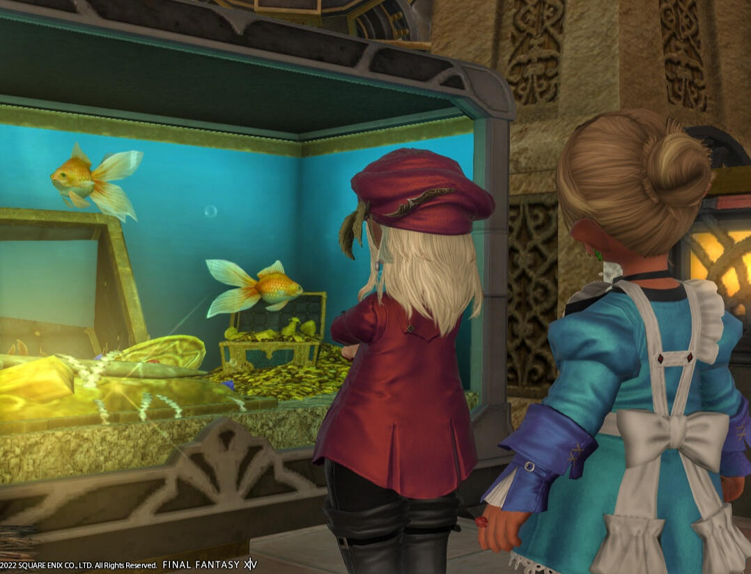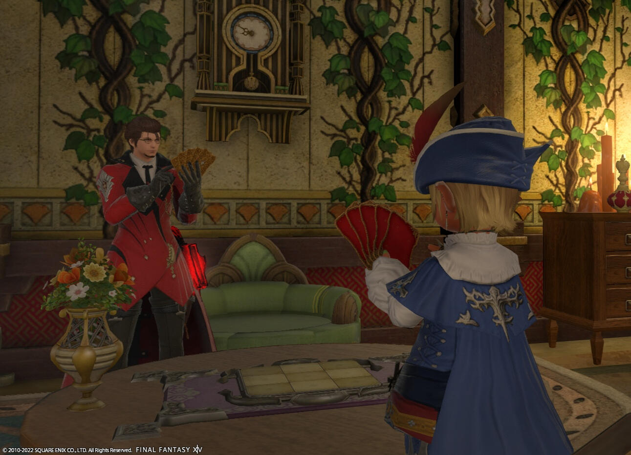 I have a job, dearest Journal! Hired by upper echelon! A rich man!I can't - I still can't think of it without shaking.I had stepped foot into my apartment's lobby in Goblet, exchanged a bit o'coin for two small sacks of potting soil, and turned to see Mr. Alexander Rho standing there beside me.You remember Mr. Rho; correct? The tall handsome dealer at the casino Nyx, Altanai, and I had recently visited. And we ran into him yet again at House of Virtuethat same eve?I asked what had brought him to my side o'the world and he said 'twas I. I! My stomach flip-flopped. I daresay I blushed. And he looked fetching in that dalamud red coat.Well, I apparently had made an impression! Nay, not that kind of impression: one of a business sense!We exchanged cordial hellos, I inquired as to the health of Madame Freyja (she's on the mend), and he announced he had a business proposition.I invited him into my wee office. My first client to sit upon the stools in my new apartment office! I may need to consider something more comfortable. Although perfect for one as short as I, it looked awkward for his stature...He explained that he had found my wee business card and was in dire need of assistance. His fiance is with child and Mr. Rho would like assistance with cleaning their house (he also owns an apartment!) in Shirogane as well as laundry, greenskeeping, and running errands. Apparently, I'd also be in charge of tending to and feeding his pet, Suckfish. Oh, and he let it slip that his beloved may also have a hankerin' for cheese. I must needs do some digging in the Herald for local - what's the word? Cheeseries?