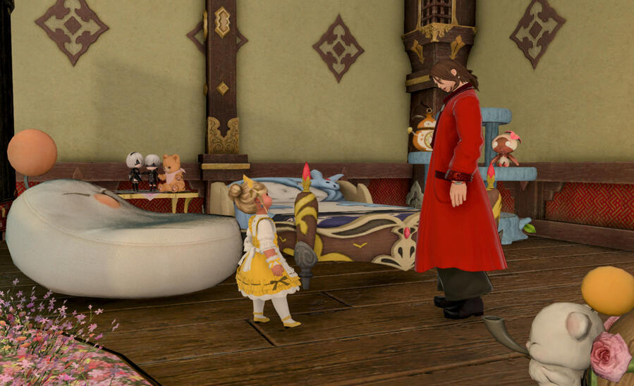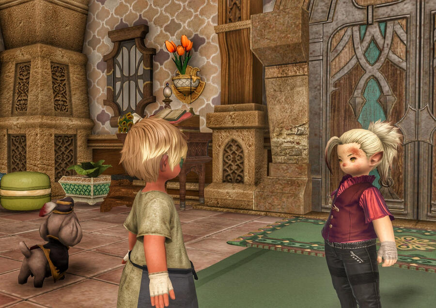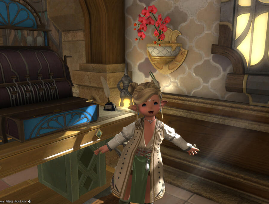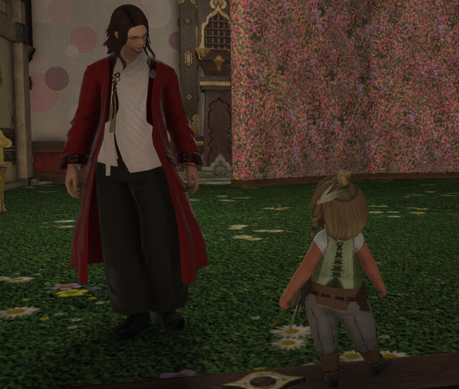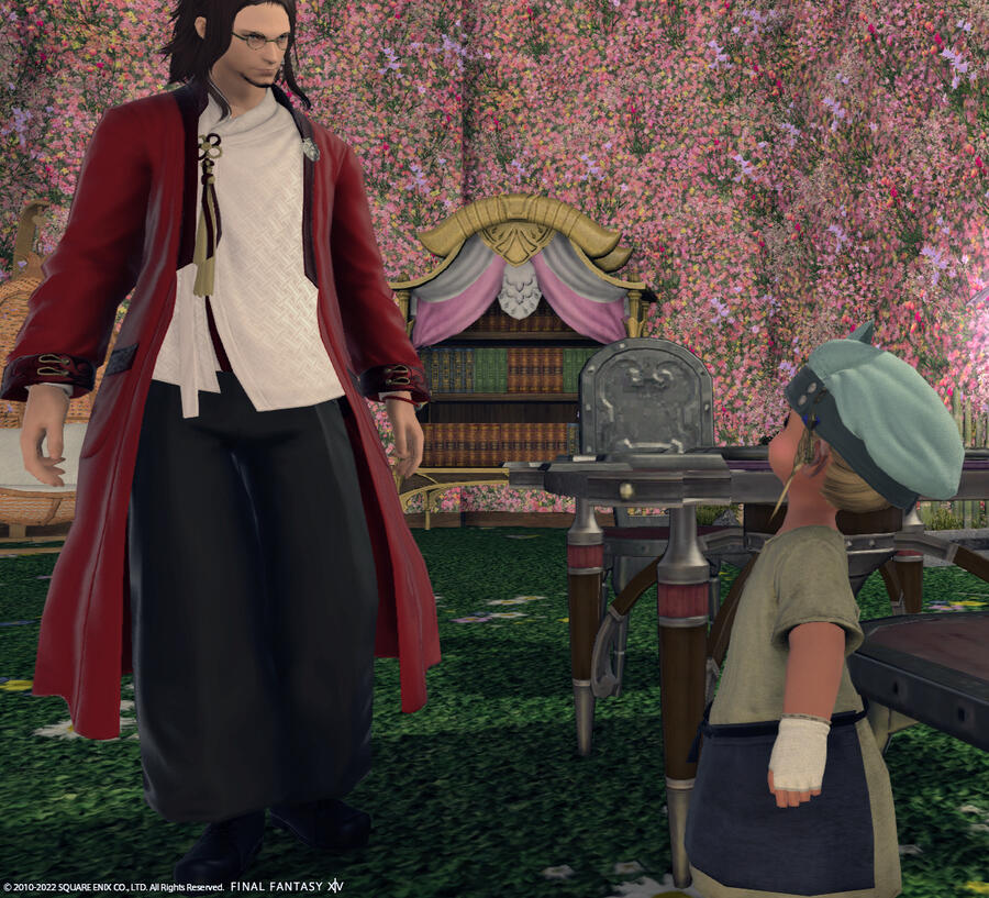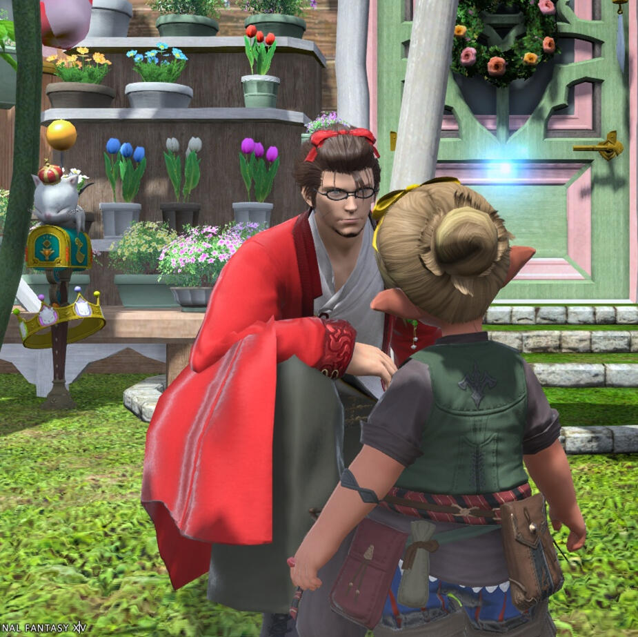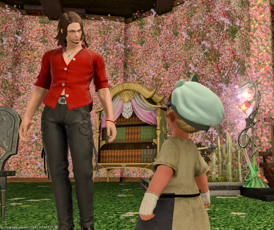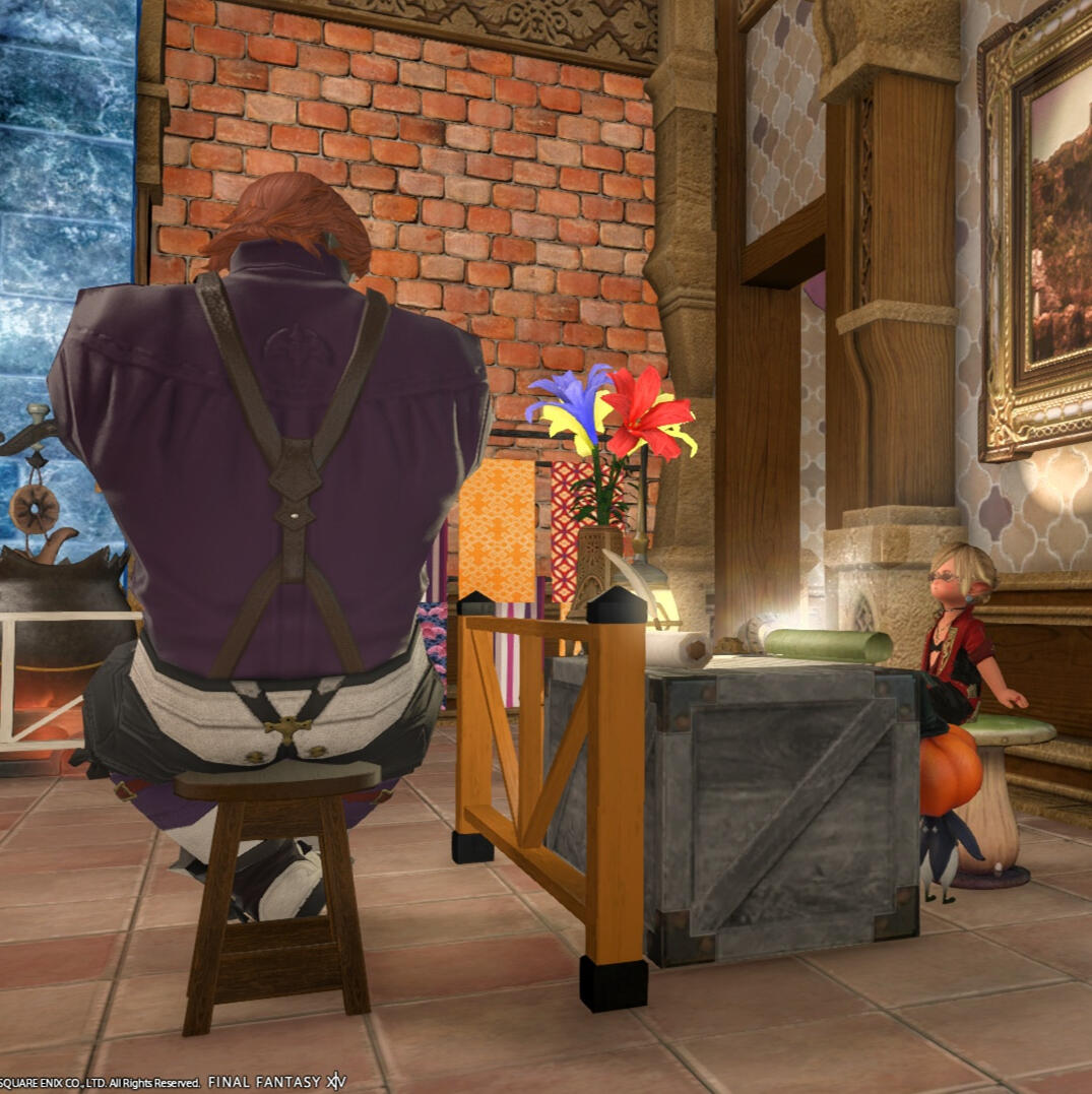 Well, it finally happened.Detective Dayfield and I were finally able to reconnect in the flesh! I was able to deliver to him his laundered goods, along with a gift to brighten up his dank and dark office.When I first arrived, he was not there. "The door is always open," he had said in the past, so I walked right in. Shortly, he followed, almost bumping into me and covered in bloodied armor; none of which he says was his. I gave him a respectful moment to change while I sat on the couch, taking in the redecorating he had done.We caught up before getting down to brass tacks and business. I discussed the Sea Dragons having returned to the Ruby Sea, he mentioned that work was scarce and he may be moving on toward mercenary work. Both of us had an aura of regret and sadness.But that's when I remembered: I brought him the gift! I had grown some red arum and plucked a bouquet just a bell sooner. Aether travel makes tasks like this so much easier, the flowers were fresh, and it's worth the cost in gil for speedy deliveries. I also picked up a small oasis vase. We spent the next several minutes searching for just the perfect spot to house them: atop a barrel in his office. It most certainly brightened up the place, and brought a sparkle to his eyes.My clockwork cart obediently followed us into the office, full of his folded laundry. I was nervous as he was my first actual paying customer. And I had recently used my laundry-pot to dye some personal belongings cactuar green...what if there was some transference? Anyroad, as he began to inspect his clothing, I noticed my mending work seemed rather...childish: thick in stitch and bunched. He didn't seem to notice. And as a shirt literally crumbled to dust as he touched it (by the gods!!!! THE HORROR!) he smile did not wane. Again, he seemed not to take notice.He gently placed the pile of clothing aside and smiled, "You did an excellent job, Zim! Better than I could have myself."I could tell he was only being kind; my lack of skill was evident. But I didn't let him know I knew...that would just be rude and awkward!I thought my days of working for the Detective were done then and there. That he'd wipe his hands of me and count his losses...but I was wrong!He advanced yet another large sum of gil, which I understood to be a burden since business hasn't been booming as of late, and asked me to find the most beautiful bracelet in all of Eorzea! He intends to present it as a gift to a lady-friend! And he instructed me not to spend all of the gil on said bracelet...and to keep the rest of the fee as payment for my services.Well, little does he understand, I cannot! That is too much! It's been several suns and I've already procured the most spectacular piece of jewelry! And I must needs do some accounting to figure in my fee, the cost of the bracelet, and the sum of aether travel and return to him the excess gil.We have, as of yet, to reconvene for the delivery.But do you know what was the best part? Even though my laundress skills were...sorely lacking? He called me a "good friend." No one had ever before given him a gift of a bouquet of flowers. "A good friend." And that makes my heart smile...