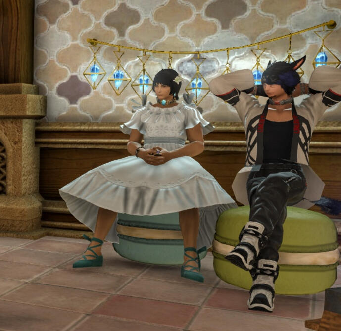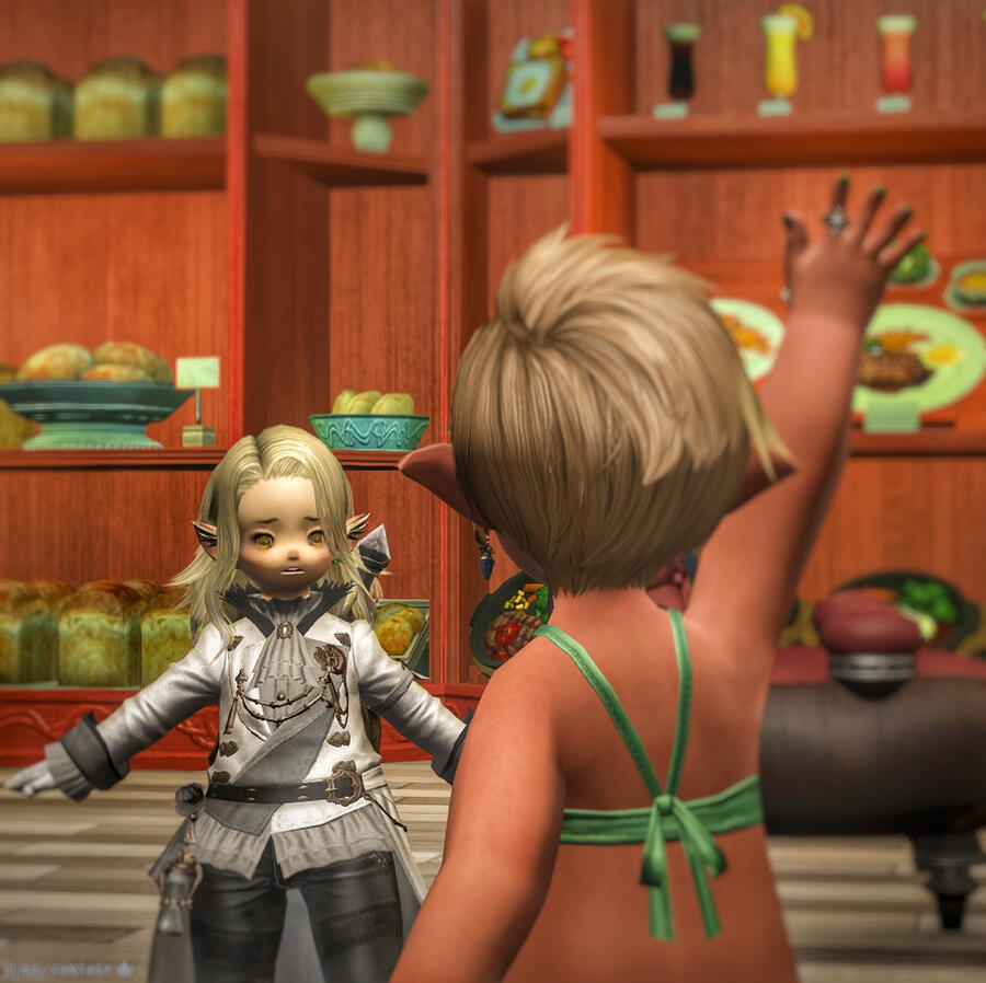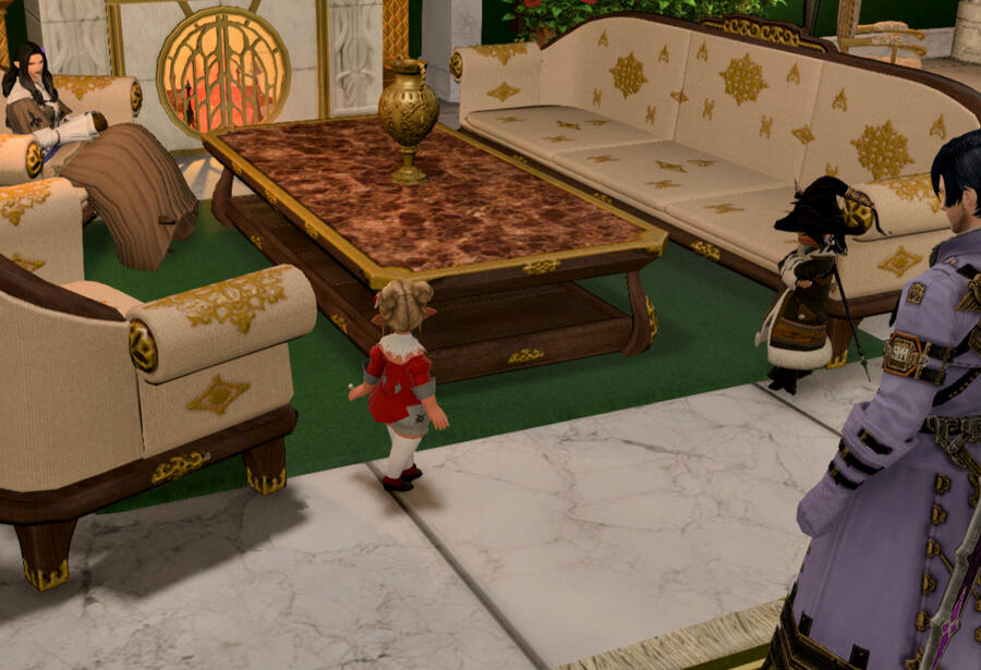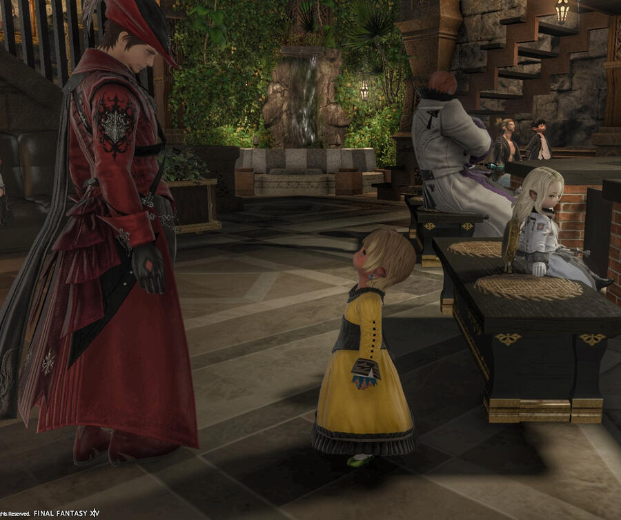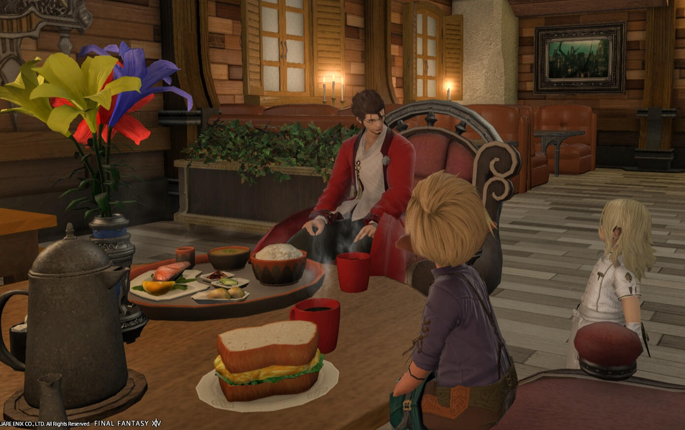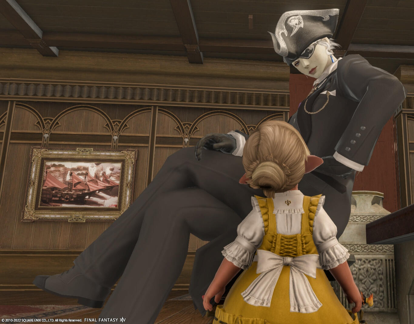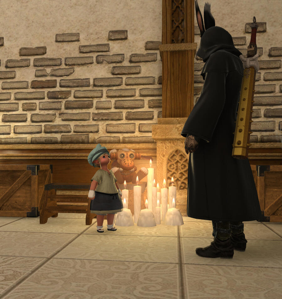 By the Gods, Ayame and Milleuda enticed so many guests to Factory! I'm so grateful Huckle Finn showed up because he was so very helpful in the lobby! There were times where I needed to excuse myself from my duties, and he was right there to entertain guests until I returned to be able to provide them the proper aethertenna frequency! Pray, he must needs apply for a job! I tried to encourage him, but he insists we would not be able to afford his wages. I must needs continue to insist!Cherry also showed up and we got to speak for a few moments. Constant interruptions of a steady stream of guests, though, does not make for good conversation.Luckily, she is patient.Oh man! A Lalafell walked into our lobby, she looked familiar, but I couldn't remember. She reintroduced herself as Jyx and offered me a gift: 50 popotoes! Fifty! She smiled and remembered how much I do love them. That was so very kind of her! My heart swelled up like a gigantic popoto, bursting with joy. I quickly stowed them inside the desk until I could retire to my room.Earlier in the day, I was traveling and swore I saw Genbu. Alas, it was not! But, it was another Au Ra that looked very similar. So, I asked if he knew Genbu...and he say "yes!" I invited him to join us that eve at Factory to reconnect and say hello. That night, he sent his sister ahead (I forget her name, but do recall it started with a "V")...and then HE showed up! Gorr. Gorr was his name, and he looked entirely different dressed for a night at Factory than when we met in Ul'dah. It turns out he knows another Genbu. Ha. Small world!At one point, Karaku summoned Nyx downstairs, so I escorted her (was she in trouble?) and I went back up to my duties and to keep Huckle company. He confided in me that he returned to his home and met with his family. His mother was so surprised he wasn't yet dead that she fainted! Ha! FAINTED! He insisted she was okay once she recovered, but he only stayed the day. I let him know he was oh so very lucky to still have his parents, and advised him both of mine passed when my siblings and I were very young. Family is so very important.Huckle invited a friend, a gigantic sort of man, I mean...he was massive! And his name was...um...something-Wall. How appropriate. Pray, how did he fit into the basement downstairs? Massive! Anyroad, he and Huckle eventually settled down to relax in the steam room while Nyx, Cherry, and I spoke on the couch.Milleuda. Oh, Milleuda. I met her briefly in Ul'dah before Factory opened to let her know that Ayame may be delayed for their intended tea date. And then she later showed at Factory as well. She is something else. Tall, elegant, kind, and she offered her assistance due to our lack of staff that evening. I will never understand how Ayame and Milleuda still had any voice left after the amount of shouting they had to do to advertise our event.At one point, Milleuda returned from wandering and fishing for guests and Huckle wagered a guess that her profession was assassin - or wait - "killer" was the word he used. She did have an air about her, and I hardly knew her...so I took a careful step behind this self-professed hero. I don't know what protected me more from her sight: his perfectly-coiffed pompadour or his broad shoulders. But, our tensions eased as Milleuda stated she is more of a chaplain. Much better than killer.As the bells droned on, I eventually couldn't keep my eyes open any longer. The constant stream of entering guests had dwindled down, so I excused myself from Cherry and Nyx's presence and entered the hall where the washroom, steam room, laundry, and my tiny bedroom reside. I loudly announced my presence in case Huckle and Mr. Wall had stripped down to their smallclothes or draped in towels - I was afraid the door may swing open at any moment. Luckily, they heard my call and exited the steam room fully clothed. In between apologetic yawns, I let them know I must retire for the eve, but not before Huckle asked me to settle a debate between he and Mr. Wall:"Just how did we afford such a luxurious house on an adventurer's salary?"I smiled and advised he must ask my employers that question; I was not privy to discuss such things.I fear there are so many details of the eve that I am forgetting...must be the Alphinade Huckle purchased for me. Goes straight to the head...Such a wonderful evening...WAIT...I forgot to retrieve the popotoes from the desk! I must needs make haste!