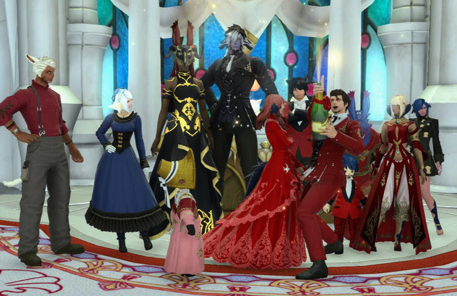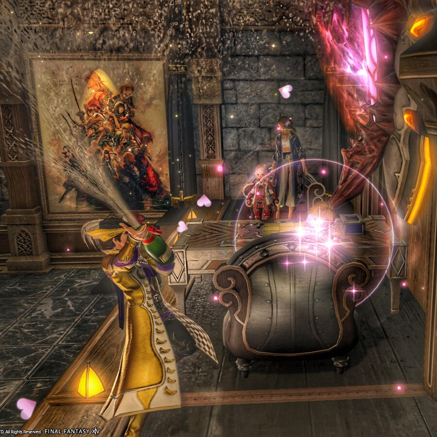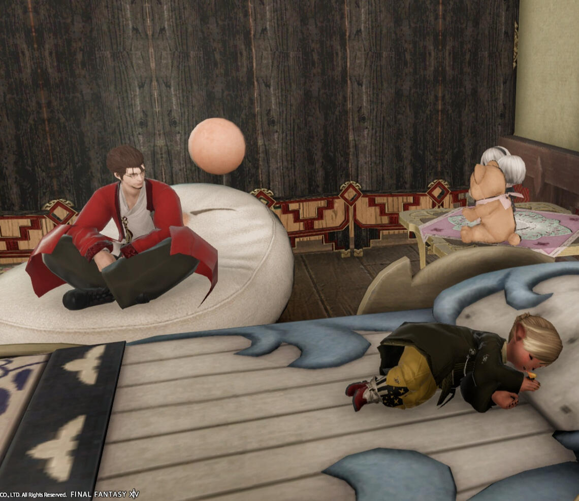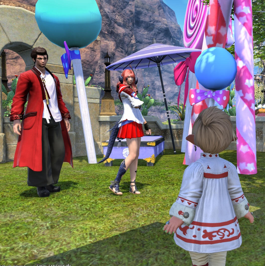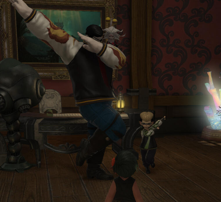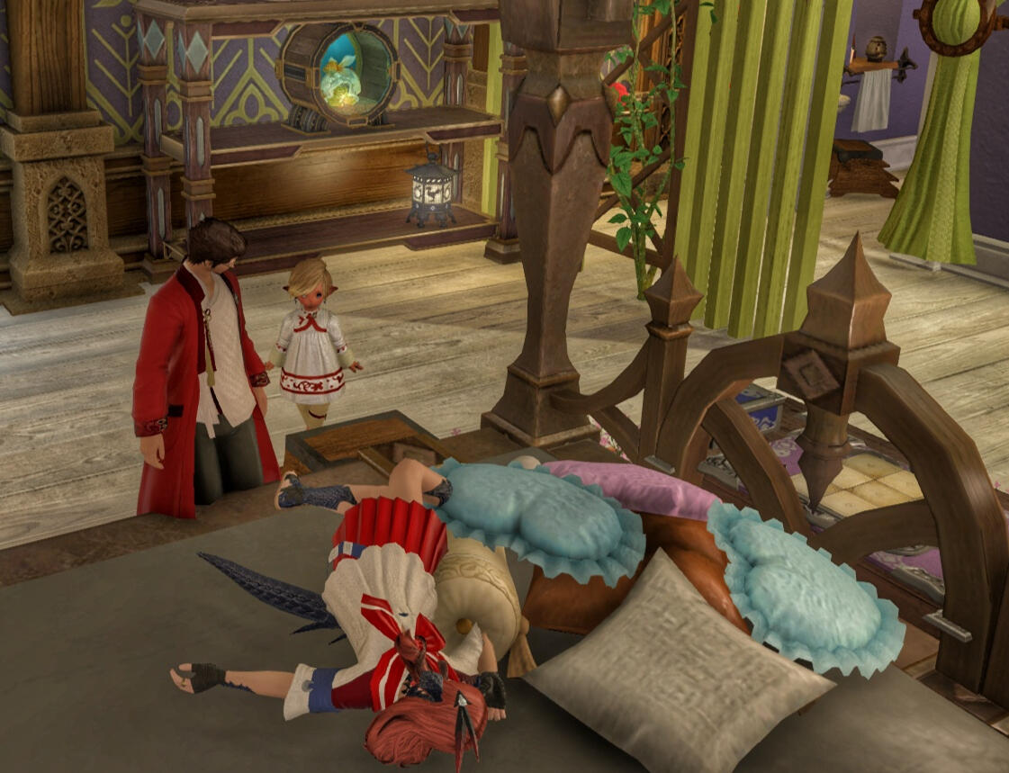 By the Gods, Ayame and Milleuda enticed so many guests to Factory! I'm so grateful Huckle Finn showed up because he was so very helpful in the lobby! There were times where I needed to excuse myself from my duties, and he was right there to entertain guests until I returned to be able to provide them the proper aethertenna frequency! Pray, he must needs apply for a job! I tried to encourage him, but he insists we would not be able to afford his wages. I must needs continue to insist!Cherry also showed up and we got to speak for a few moments. Constant interruptions of a steady stream of guests, though, does not make for good conversation.Luckily, she is patient.Oh man! A Lalafell walked into our lobby, she looked familiar, but I couldn't remember. She reintroduced herself as Jyx and offered me a gift: 50 popotoes! Fifty! She smiled and remembered how much I do love them. That was so very kind of her! My heart swelled up like a gigantic popoto, bursting with joy. I quickly stowed them inside the desk until I could retire to my room.Earlier in the day, I was traveling and swore I saw Genbu. Alas, it was not! But, it was another Au Ra that looked very similar. So, I asked if he knew Genbu...and he say "yes!" I invited him to join us that eve at Factory to reconnect and say hello. That night, he sent his sister ahead (I forget her name, but do recall it started with a "V")...and then HE showed up! Gorr. Gorr was his name, and he looked entirely different dressed for a night at Factory than when we met in Ul'dah. It turns out he knows another Genbu. Ha. Small world!At one point, Karaku summoned Nyx downstairs, so I escorted her (was she in trouble?) and I went back up to my duties and to keep Huckle company. He confided in me that he returned to his home and met with his family. His mother was so surprised he wasn't yet dead that she fainted! Ha! FAINTED! He insisted she was okay once she recovered, but he only stayed the day. I let him know he was oh so very lucky to still have his parents, and advised him both of mine passed when my siblings and I were very young. Family is so very important.Huckle invited a friend, a gigantic sort of man, I mean...he was massive! And his name was...um...something-Wall. How appropriate. Pray, how did he fit into the basement downstairs? Massive! Anyroad, he and Huckle eventually settled down to relax in the steam room while Nyx, Cherry, and I spoke on the couch.Milleuda. Oh, Milleuda. I met her briefly in Ul'dah before Factory opened to let her know that Ayame may be delayed for their intended tea date. And then she later showed at Factory as well. She is something else. Tall, elegant, kind, and she offered her assistance due to our lack of staff that evening. I will never understand how Ayame and Milleuda still had any voice left after the amount of shouting they had to do to advertise our event.At one point, Milleuda returned from wandering and fishing for guests and Huckle wagered a guess that her profession was assassin - or wait - "killer" was the word he used. She did have an air about her, and I hardly knew her...so I took a careful step behind this self-professed hero. I don't know what protected me more from her sight: his perfectly-coiffed pompadour or his broad shoulders. But, our tensions eased as Milleuda stated she is more of a chaplain. Much better than killer.As the bells droned on, I eventually couldn't keep my eyes open any longer. The constant stream of entering guests had dwindled down, so I excused myself from Cherry and Nyx's presence and entered the hall where the washroom, steam room, laundry, and my tiny bedroom reside. I loudly announced my presence in case Huckle and Mr. Wall had stripped down to their smallclothes or draped in towels - I was afraid the door may swing open at any moment. Luckily, they heard my call and exited the steam room fully clothed. In between apologetic yawns, I let them know I must retire for the eve, but not before Huckle asked me to settle a debate between he and Mr. Wall:"Just how did we afford such a luxurious house on an adventurer's salary?"I smiled and advised he must ask my employers that question; I was not privy to discuss such things.I fear there are so many details of the eve that I am forgetting...must be the Alphinade Huckle purchased for me. Goes straight to the head...Such a wonderful evening...WAIT...I forgot to retrieve the popotoes from the desk! I must needs make haste!