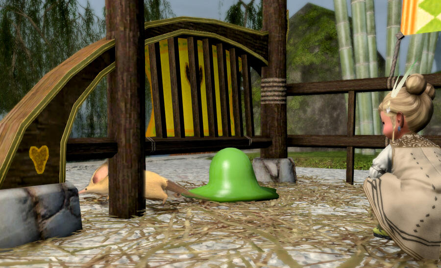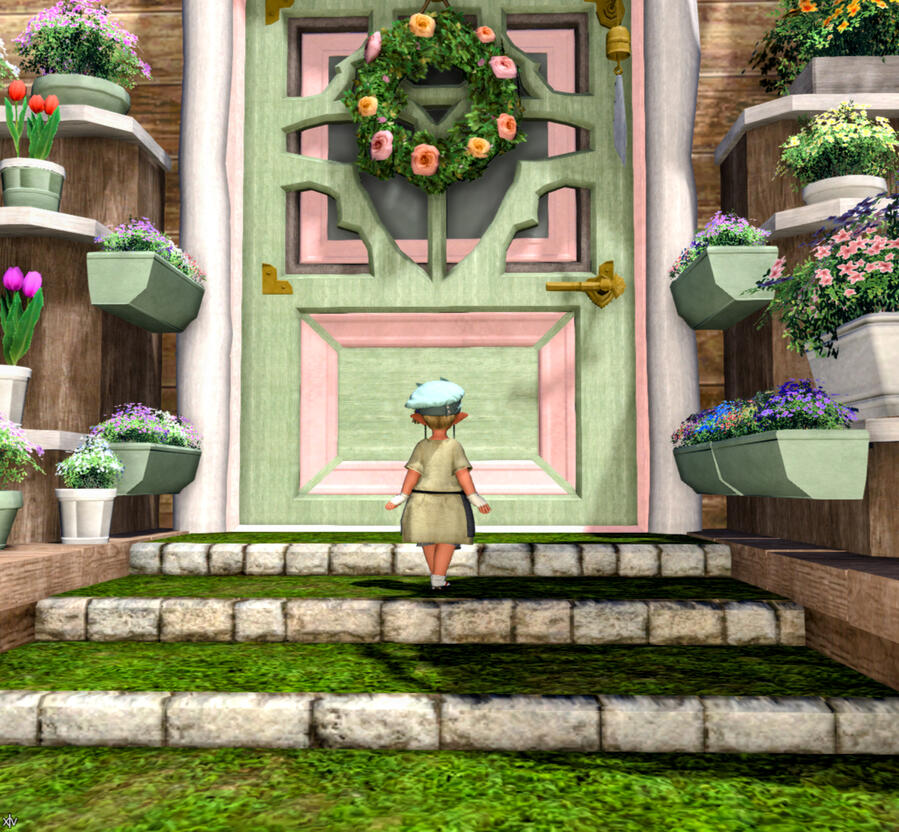 Dearest Journal, then I followed the streets of Empyreum to an apartment for Kjerstie and her postmoogle delivery deeds. I knocked a few times, but no response although the doorknob gave way to my jiggling and inward I stepped. She stood there but a moment, back facing me as she fussed with a hat, and whirled as I apologized for letting myself in...