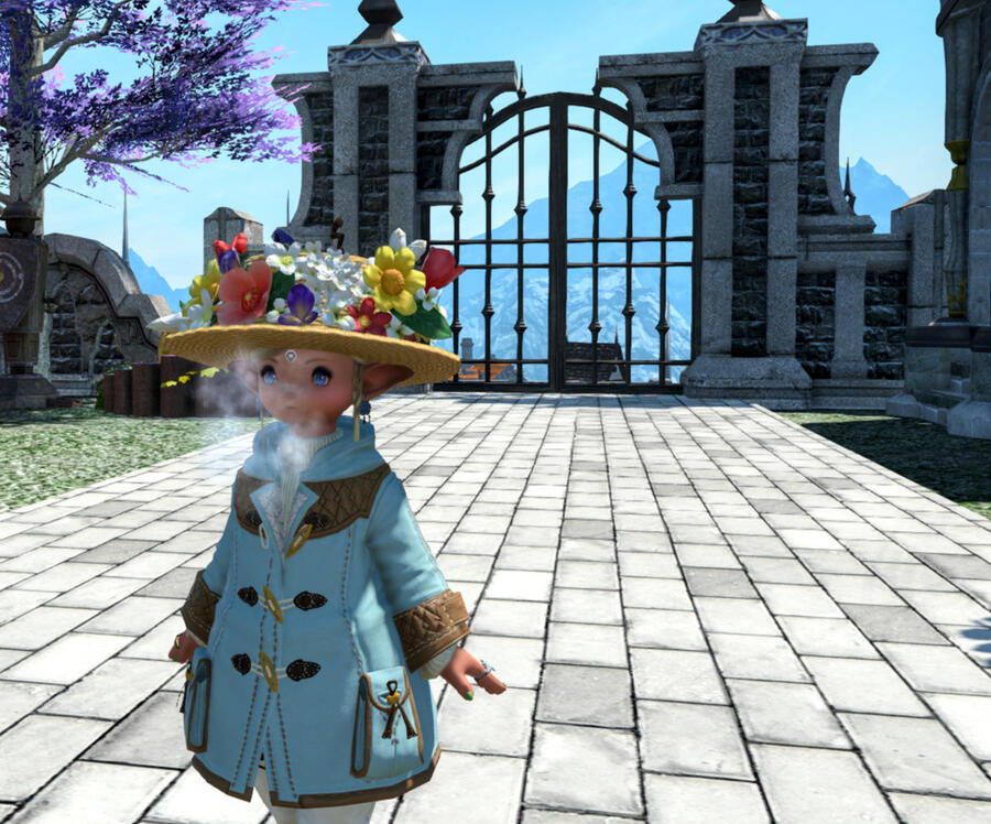 Today we all gathered over a light breakfast at the Inn before heading out on a ferry ride to the isles. I'm surprised, Kasen actually brought us to our destination, despite taking a somewhat dangerous route.There were large bird-like creatures that Senpai narrowly avoided injury. At one point we all had to flee to safety! And there were swarms of bats! So many bats! All I could do was toss pebbles at them in the hopes of shooing them off of Kasen! The others more capable in the art of fighting were able to dispatch the vermin. Karaku and Tsukiko were safe in the back of the group. And I was able to collect more pebbles among the broken cobblestones. My pouch is full!Kasen also led us to a small settlement, I think it was called Hoghorn Hut or something like that. Anyway, the small tavern had a stove which warmed my heart and hands. It's design held the attention of Karaku who mumbled something about "captured flame." That Au Ra has so much yet to learn...We made it to the temple that was our destination: twelve alcoves, one for each diety (I think), lined a courtyard. Most of us paid our respects and made offerings to each in the hopes of obtaining their blessings. Kaine offered meat from the fresh kill. I had my popotoes. And I think Ayame laid pearls down onto each alcove. I saw Senpai at several, but am unaware of what he offered. Unfortunately several portions of the walkway were flooded, the water was cold, and my tights were soaked. And Kasen (daresay I am beginning to trust him more) was kind enough to lift me over a small wall so I would not have to trudge through the water again.The best part? Karaku and Tsukiko announced they are to be wed!! Immediately! Many of us made our way back to the market via the ferry to buy outfits fitting such an occasion! I am so excited! I have picked up a warm coat, with fur-lined sleeves, and it's the color of my beloved popotoes! Hopefully, it's comfort will soothe the cold in my bones. I also found a skirt that goes well with the brass threads of my new coat, but am not quite sure if that is what I will wear. It seems a bit flashy, but my options may be limited to what's available in the market with such short notice. A local flower vendor sold me a dried oldrose for my hair...and I love it! I may never take it off! And my tights are ruined from the venture through the water; I may have to pick up some new ones. But I am oh so low on gil. I wonder if they'd trade for some popotoes...?But the big dilemma? What to gift those who saved your life? I must needs give it special thought.Oh, and before I forget, Kaine (our new chef) makes the most delicious popoto salad!