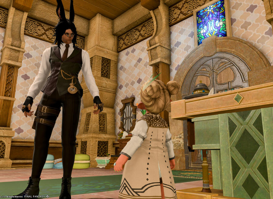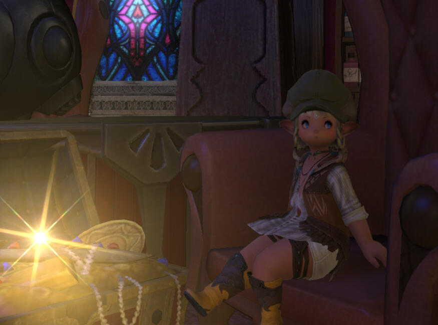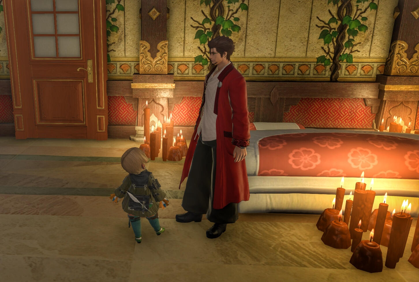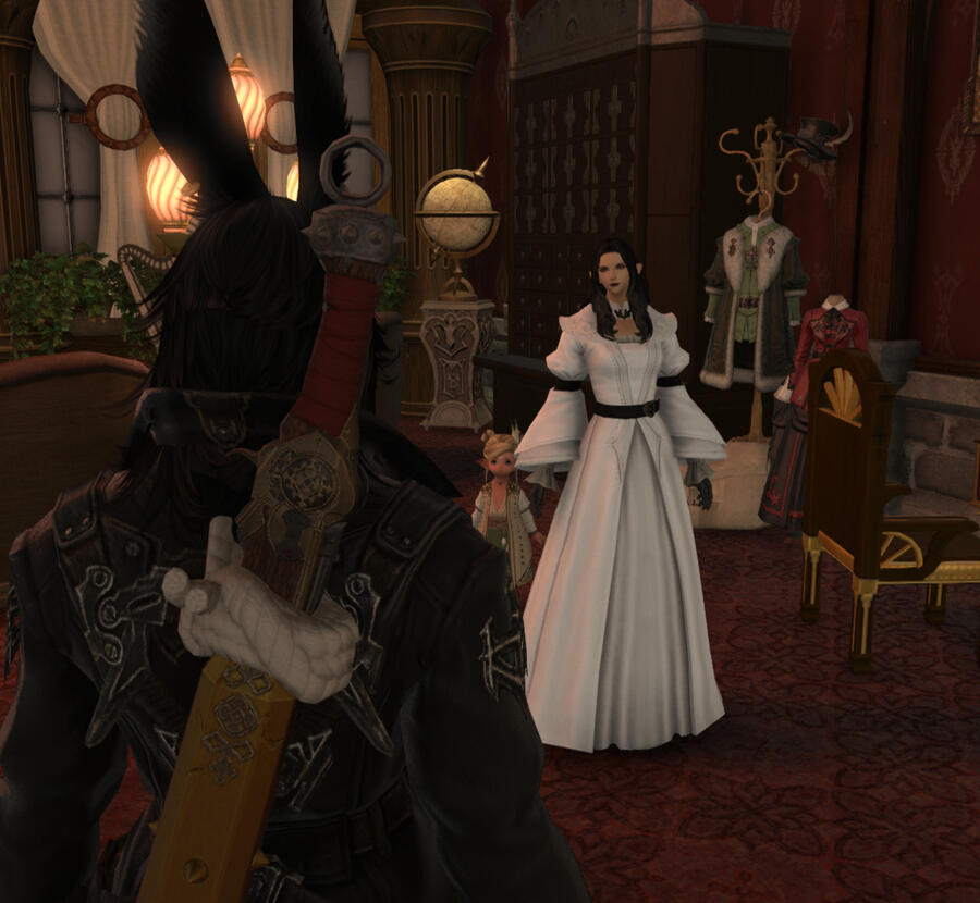 Dearest Journal, Remember that glove I’d won fair and square off the hand of Alexander Shimizu? Well, I had set a date to meet Mistress Urleaux at her apartment in Ishgard to discuss business. If you recall, she stated she was an artisan of alloys as well as wood. And, besides, it was high time we caught up as it’d been quite a while since we’d met…
