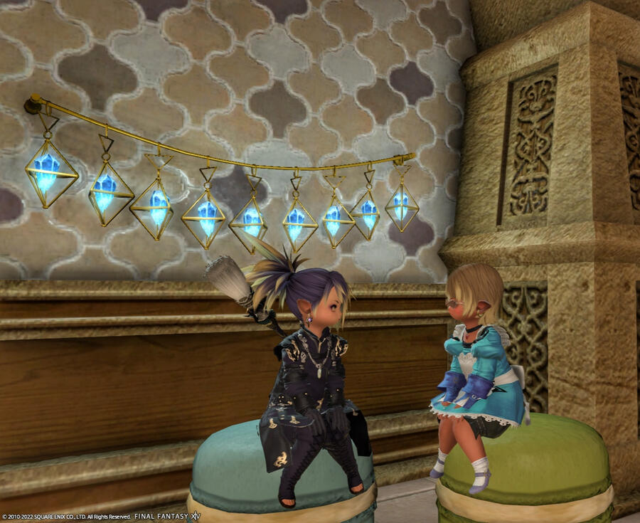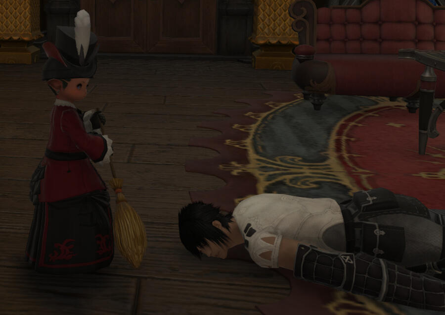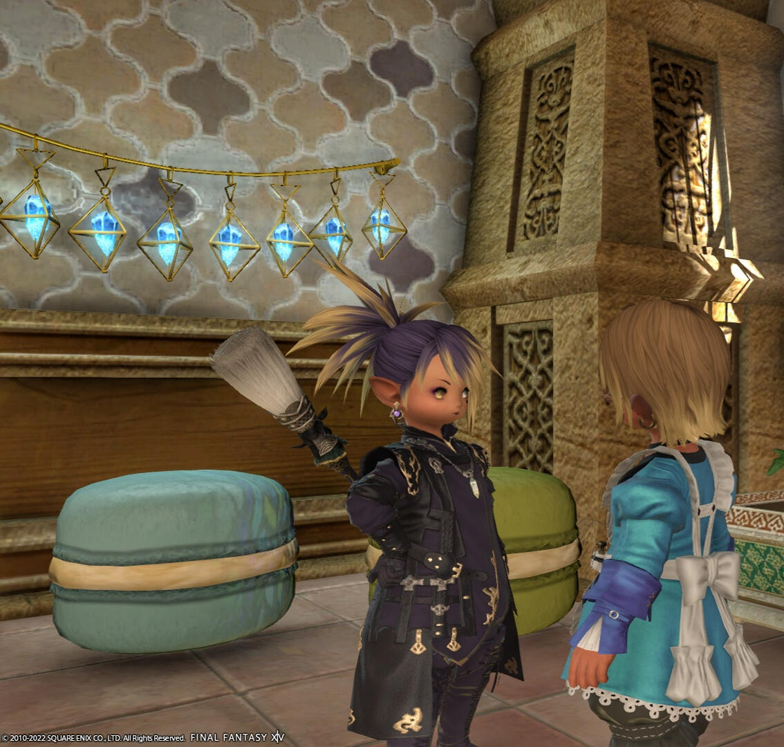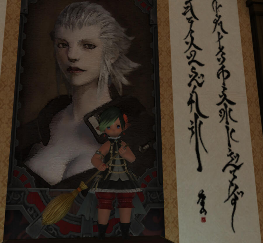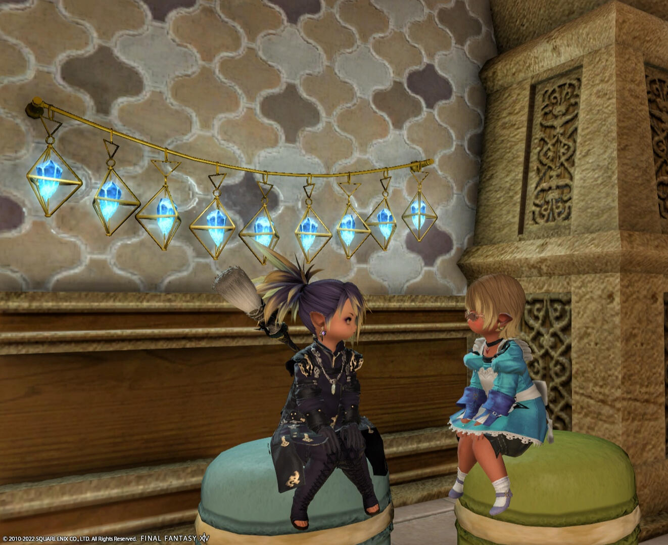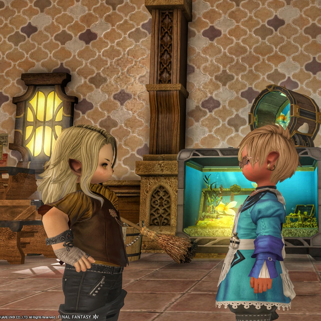 What a wonderful night once more at Factory! Non-stop clientele. Cherry introduced a new card game. And Huck taught me a game of dice. Where to begin?I suppose the first thing I remember occurring last night was the card game. I tried to remove the coral from our table in the lobby, but it was too heavy and Mistress Milleuda helped tuck it behind one of the chairs. Oh no! I just recalled we hadn't moved it back yet - I shall have to enlist the help of others to put it back. Anyroad, Huck insisted that I sit on his left side in order to "block the bad luck." He cited some scientific reasoning behind it, but I quickly obliged regardless of the insane nature of his theory. A chance to stand next to such a hero? Yes!He did not fare well, though, and I fear I was not great at blocking such bad luck...I offered to shift some, to which he grabbed my wrist and asked me not to move. How does one even begin to describe the shooting sense of electricity as his hand grasped my wrist? It wasn't painful or commanding. It was just a light touch. And oh so...warm. A desperate maneuver to ask me to stay? Regardless, Cherry won. Even when they wagered gil. I tried to comfort him, reminding that he'll be paid for his night's employ, but I think it helped only a little.I received a ping on my Linkshell. Sani, the artist that I spoke of and hired Detective Dayfield to locate, had received his message. We have scheduled Huck's sitting for today at Camp Bronze Lake! I am so excited to see what she comes up with. And to also see what Huck decides to wear as "soothing and calming" attire. That is the painting's intent, is it not? To - how'd he put it when we first met - "further relax our guests in the steam room."Huck stayed up in the lobby with me for quite a while, and he often beat me to greeting our guests. He's also taken to sitting atop the desk, and the level checker replica. At one point during the night, he danced upon it. I admonished him not to scratch either the replica or the desk or the repairs would come out of his wages. At another point in the night, he actually leapt down from the replica as I walked up the stairs and startled the popotoes out of me. His laughter filled the lobby. I couldn't help but join in. Infectious. The brat.Mr. Wall arrived at some point, alas without Nyx, but his presence created the most alarming phenomena. With a flourish of arm movements and head shakes, suddenly Huck froze beside his friend. Literally - froze. I poked and tickled and inquired and poked further - but he would not budge. Milleuda was upstairs at the time, too, and found the occurrence peculiar. I began to worry, calling out his name, but alas - nothing. What sort of sorcery has frozen my friend? Cherry and Vida rushed upstairs at the commotion. And suddenly Mr. Wall succumbed to the same spastic motions and froze as well! It was horrible!The joke's on me, though. Through hard-pressed lips, Huck mumbled they stood aloft for the sake of art. ART! And once the emergency had passed, the interest died down. Milleuda, Cherry, and Vida returned downstairs. I whispered the magic words into Huck's ear - of which I shall not share with you here, Journal, in case anyone were to ever read and discover his weakness - and he immediately unfroze in a panic. Our duties resumed unscathed and suddenly Nyx appeared. I alerted her that a "certain someone" may have been waiting downstairs and she speedily exited the lobby. Wall and Huck followed. And I was once again alone, to tend to my sweeping the floors and greeting our guests.A few moments of great import' occurred:1. A Lalafell fled the club, running passed me as she emerged atop the stairs and ran for the front door. She didn't acknowledge my farewell and I've never seen anyone run that fast. I daresay it appeared she was distressed. Moments later, a gentleman approached me upstairs. He let me know that one of our guests had literally swept his date beneath their broom, cracked an unseemly comment about a dust bunny, and continued to sweep. As any Lalafell would, she took great offense and opted to leave with haste. I apologized on behalf of Factory and the Embassy, and advised him we would have words with this patron immediately. His parting words were, "The music was so great. It's a shame..." By the gods! I stomped downstairs straight to Vida and alerted her to the fact that someone had accosted our clientele with a broom. As fate would have it, the sweeping-dancer was directly behind me, but I left the reprimanding to our commanding Captain and went back upstairs. A few moments later, the woman (still carrying her broom), joined me up in the lobby. I offered that she help me sweep upstairs, but out of fear of her sweeping guests as they arrived, I changed my mind and escorted her to our washroom. She was quite content to sweep the floors there. And then I showed her the laundry room. She nearly fainted at the sight of the hingan cleaning supplies against the wall. I remember she whispered something about "such a charming broom..." and began heartily sweeping the room, carefully avoiding the strewn smallclothes and baskets. I left her to it.2. A gentleman, whose name I cannot recall - except that it started with a K...I think...anyroad, I digress: he made some ill comments about men being better than women and Vida quickly kicked him off the dancefloor. On his way out, he patted me atop my head, which made Huck bristle beyond measure. At that precise moment, a guest arrived and Huck had to follow them downstairs to give them the aethertenna frequency, so it was just I and this man. He said I was "cute," which was nice. But then asked where he could "obtain one of me." I advised him that our establishment was not a brothel, but mayhaps he could fine one. He said I misunderstood, that he desired to obtain a Lalafell as as pet! The gall! The nerve! The idiocy! My blood boiled on the inside and I was grateful Huck was downstairs for fear of his reaction. I maintaine