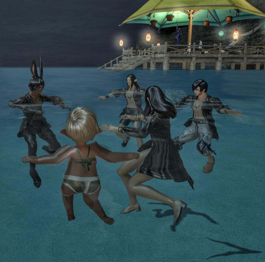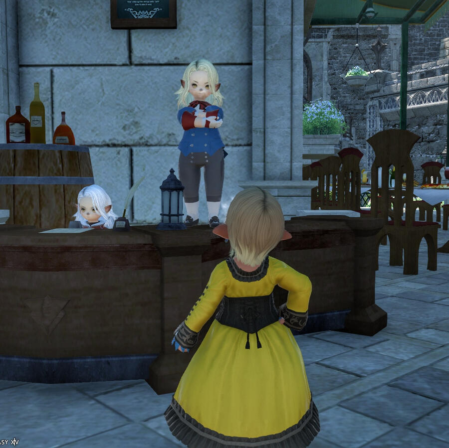 So much has occurred, Journal, in the recent past and I have been sorely lacking in my writing!Let's see. First off, I've realized I never fully explained: Huckle Finn legally changed HIS name back to his original name as well! So, if you see reference to Zototo Finoto in these pages, it's that same Lalafell I fell smitten with that first night at Factory.Speaking of him, oh my - we went to the House of Virtue casino one eve and found ourselves in the bath house (did you know it's free?) - I found a swimsuit in the changing room but he - he - HE wore his smallclothes!Do you know what happens to white small clothes when they're wet? Well, let me tell you: as a professional laundress, I DO. So, I sat in the bath across the aisle, daring not to turn to address him until he remained beneath the water.Although, what one can imagine beneath the steaming waters is another thing.Nyx and Xaya showed up later and shared a bath - when I say bath, they're like small pools. Nothing small and intimate. Anyroad, they seemed to be enjoying the conversation.I don't remember the name of the drink I had, but I think it may have been called the 24 Karat. It was sweet and expensive - precisely the reasons Zototo said he didn't enjoy it.Hm - what else?Oh! I returned another day solo to the House of Virtues; there were no chairs at the dice tables below so I was escorted upstairs to the VIP room! I was alone with the dealer for quite some time. Turns out, she runs the place! The proprietress was my dealer! Mayberry was her name. I lost almost all of my gil that night. And, I'm not supposed to tell anyone, but she gave me a free drink on the way out and pockets full of cookies.And then there was the rainy night in New Gridania...Zototo had asked me to join him for dinner at the Carline Canopy. Seeing as I had not yet purchased a new dress, a neighbor loaned me hers: a silky white number with puffy sleeves! I loved it. I even plucked off an oldrose from Zototo's planter above my bed and tucked it (securely this time) into my hair.By the time I passed through the aether and ended up in Gridania, the weather had shifted and it was pouring down rain. I hadn't thought to bring my parasol, so ran as fast my legs could carry me...but was a sopping mess by the time I arrived.There he was: already seated and dry in dark blue trousers, a red vest with white shirt, and of all things: eyeglasses. He later said they were a disguise - so just he and I could enjoy our dinner undisturbed from his numerous and adoring fans.Brilliant thought! And he ordered us beverages.Red wine warmed my veins and I forgot the cold, wet clinging silk of my dress.Just as the wine started flowing, a Lala neither of us knew joined our table. Always pleasant, Zototo made introductions and the strange fellow busted out a harp and played a tune before suddenly vanishing.In his stead, though, was Nyx! Magic? Or just perfect coincidence? Anyroad, she joined us as well and conversation continued. Zototo had previously mentioned an accident on a mission of he and Nyx. When I pressed her for more information, she said he had lost 100,000 gil worth of weapons?! WHAT!? Pray, it wasn't Three Sisters' artifacts; nor that such a mistake is ever made public.Speaking of the Three Sisters: nearly everyone showed up at our little dinner party! Xaya, Altanai, and even Mr. Wall! Even that little Lala-bard returned and continued to serenade us.Once he left, Zototo excused himself for a moment and returned in strange clothes carrying a variety of musical instruments. He stood atop our table and a few tunes as well!Free-flowing wine (I wonder who picked up the tab that night?) and Triple Triad games ensued. A drunk and dozing Miqo'te even sat on Altanai's lap and couldn't be persuaded to leave.Exhausted by the booze, I excused myself back into the night. At least by then it had stopped raining.I may have had a bit too much to drink that night as I can't remember the specifics of any conversations! Ha.