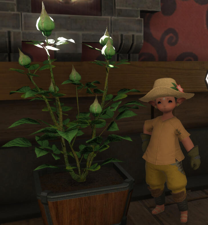 Alas, I am disappointed.After several suns of tending our garden, it only granted us a bountiful harvest of almonds and mandrakes. No lilly seeds to be found.But, Karaku procured some Thanalan topsoil, which I hear is far better for intercrossing plants. So, try, try again!After clearing and tilling the garden, I learned that I must needs more seeds! I was completely out of almond and mandrake seeds!But first, I had to clean the stables and clear the dirty dishes off the buffet table. Then I was free to leave the Embassy in search of the seeds. Rather than spend our hard-earned gil, I grabbed my hatchet and scythe and headed out.All morning I scoured and searched, but only procured the necessary four almond seeds to plant. Mandrake seeds are elusive buggers. I will continue my search later, but cannot neglect my other Stewardess duties.In the interim, I shall enlist our retainers to sell the almonds and mandrake. Pray they sell and fill the Embassy's coffers.