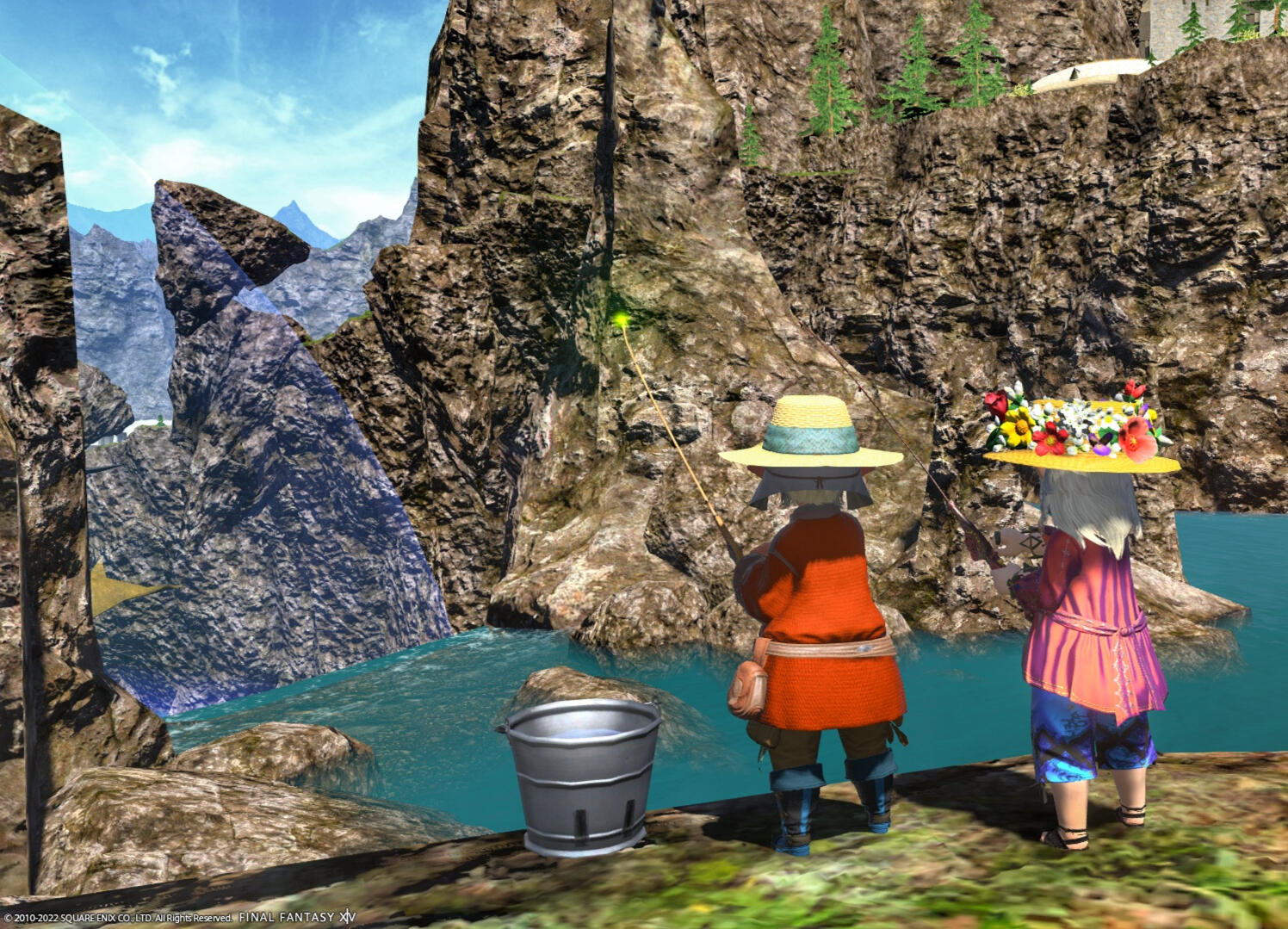 Dear Journal, Badge picked me up being our day of fishing! Both already dressed and carrying the right tackle and gear, we hopped upon Virtue and off we went. His hat was something to behold! Lucky, he called it. Anyroad, we flew for quite a while before descending to the shorelines in the Dravanian Hinterlands...