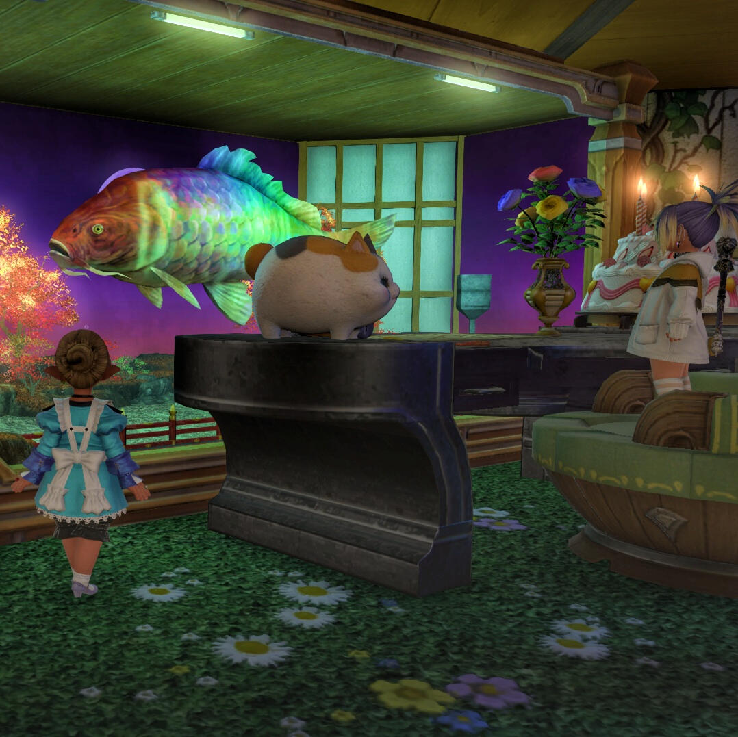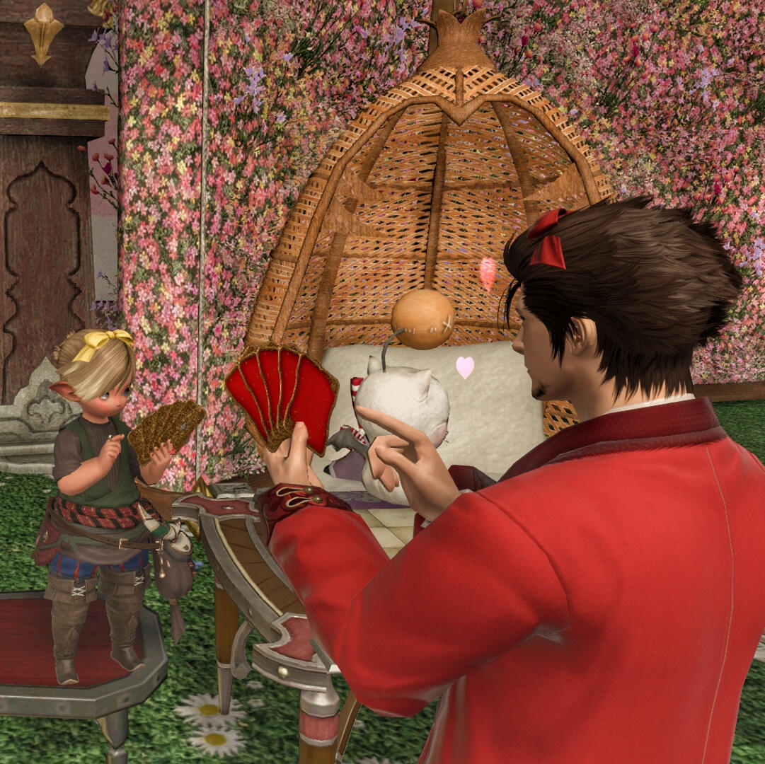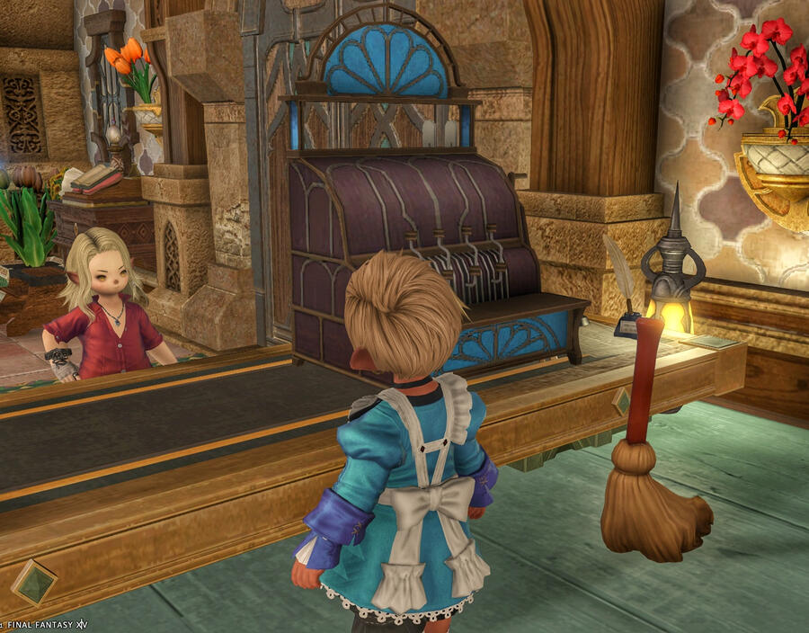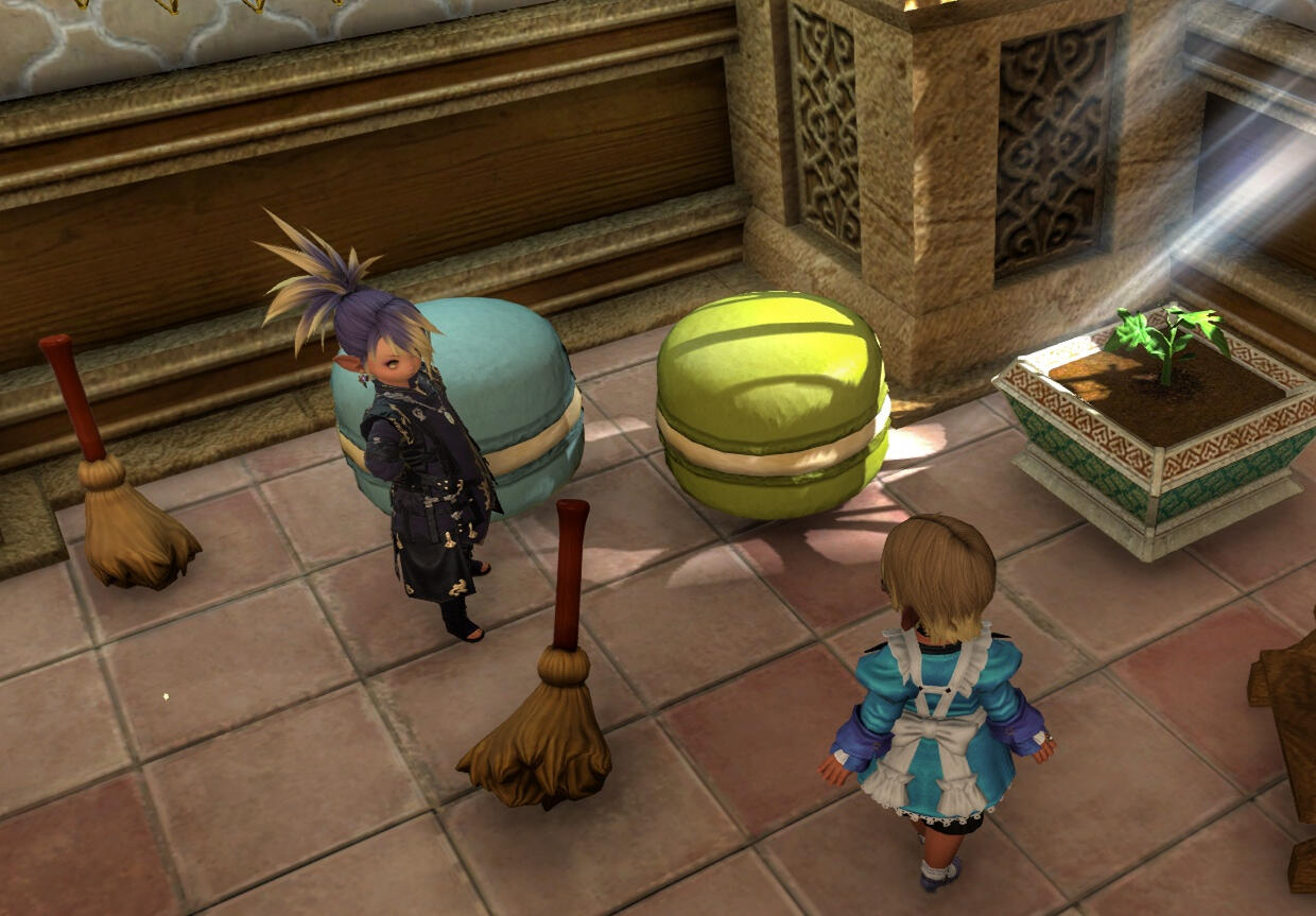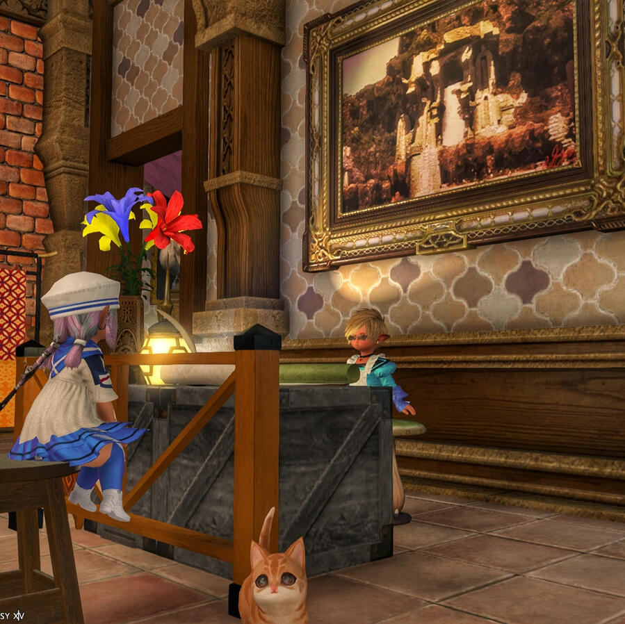 I have a job, dearest Journal! Hired by upper echelon! A rich man!I can't - I still can't think of it without shaking.I had stepped foot into my apartment's lobby in Goblet, exchanged a bit o'coin for two small sacks of potting soil, and turned to see Mr. Alexander Rho standing there beside me.You remember Mr. Rho; correct? The tall handsome dealer at the casino Nyx, Altanai, and I had recently visited. And we ran into him yet again at House of Virtuethat same eve?I asked what had brought him to my side o'the world and he said 'twas I. I! My stomach flip-flopped. I daresay I blushed. And he looked fetching in that dalamud red coat.Well, I apparently had made an impression! Nay, not that kind of impression: one of a business sense!We exchanged cordial hellos, I inquired as to the health of Madame Freyja (she's on the mend), and he announced he had a business proposition.I invited him into my wee office. My first client to sit upon the stools in my new apartment office! I may need to consider something more comfortable. Although perfect for one as short as I, it looked awkward for his stature...He explained that he had found my wee business card and was in dire need of assistance. His fiance is with child and Mr. Rho would like assistance with cleaning their house (he also owns an apartment!) in Shirogane as well as laundry, greenskeeping, and running errands. Apparently, I'd also be in charge of tending to and feeding his pet, Suckfish. Oh, and he let it slip that his beloved may also have a hankerin' for cheese. I must needs do some digging in the Herald for local - what's the word? Cheeseries?