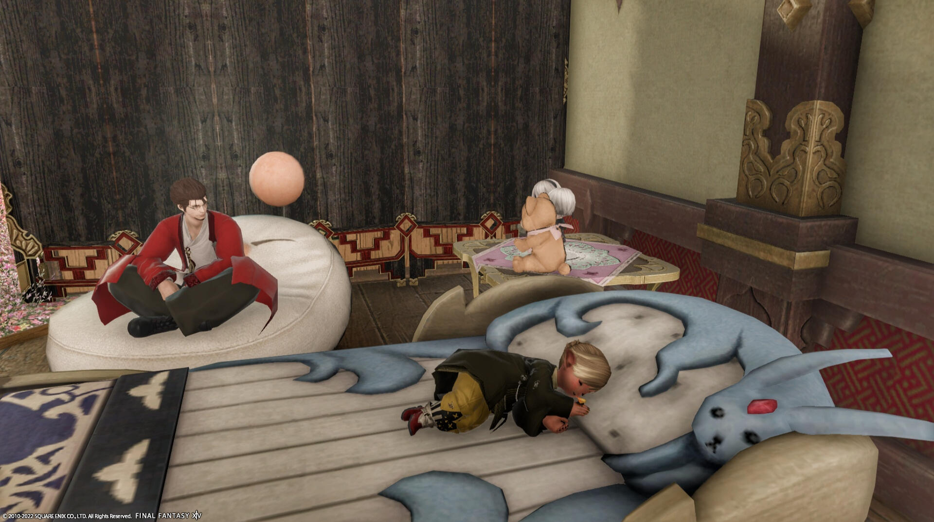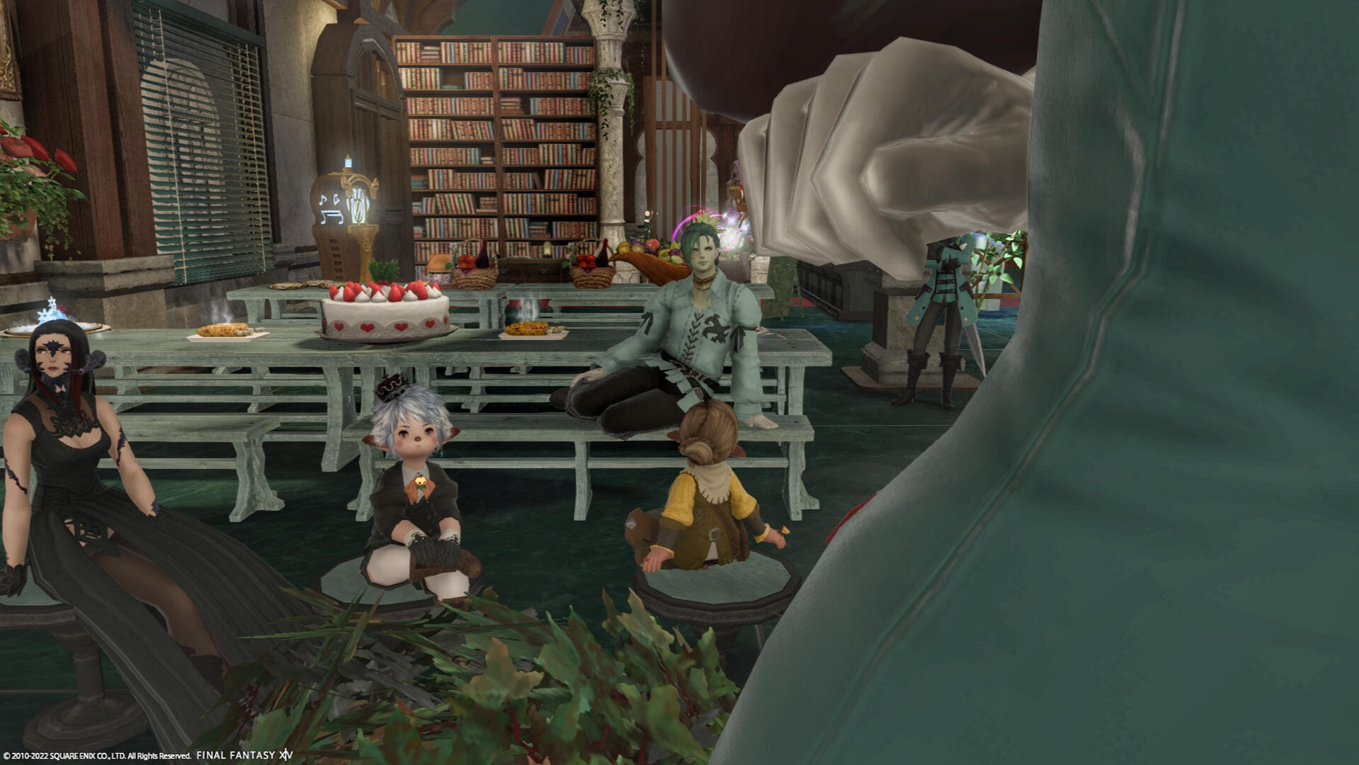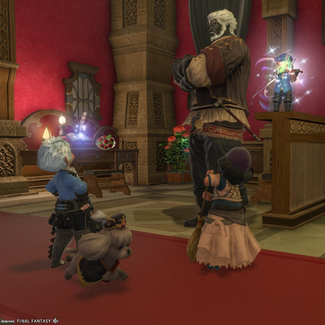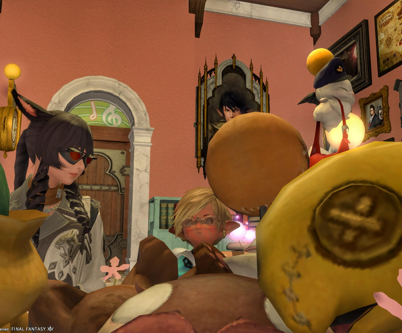 Oh my. I have never seen the Embassy so full, and there were times were downstairs in the Factory was literally shoulder to shoulder.It was wonderful!But, it was so very busy at times! Once, nine people walked into the lobby. Nine! I did my best to greet each with the same excited energy and respect, and beckoned them downstairs. I'm sure Genbu was just as busy tending bar. Ayama and Altanai must be exhausted from dancing. I wonder if Kasen still has any voice left? And Tsukiko and Karaku must be tired from standing and tending the aethertenna all night. They must needs a chair up there. Vida did a wonderful job, I'm told, of making sure everyone remained in line. I know I'm wiped.But it was so worth it! Early in the evening, an armored Lalafellen wandered in and removed his helmet. His hair - it...it...it remained perfectly formed into a beautiful pompadour. I just don't understand what magiks were used for such an illusion. Or mayhaps it was just very strong product of some sort. I kind of had the eye and a liking for this warrior and convinced Kasen to head downstairs and purchase a drink on my behalf. His name was Huckle Finn and well, our guide actually purchased two: one for our guest and one for me. Little did I know it was the super delicious and extra-strong alphi-nade! That alcohol hit fast!Eventually, Huck's friend showed up and they wandered down to the Factory. I set aside my girlish crush and tended to tidying up the lobby before more guests arrived.Pearl showed up. Sauntered in like a dark and beautiful aether cloud and drifted her way downstairs. That creature. Is. Something else!Eventually, Nyx and Huckle found their way back upstairs and I watched them step through our private chambers. I followed and found them in our workshop. It gave me great joy to sit at the wee Lalafellen-sized desk in the corner and get to know our guests more...but had to return to my duties. Soon, Nyx parted ways and left Huckle to wander the Embassy. I encouraged him to explore the steam room, - which he did! Said he'd highly recommend it to others and that it was incredibly relaxing! Even stated that mayhaps a portrait of his calming face (and glorious hair) be hung upon the brick walls to further add a calming effect. I would have to ask my employers and commission such a piece. He soon took his leave, but not before I learned he's descended from generations of popoto farmers!!!!!All night was a never-ending torrent of guests. It was incredible!At one point, a Lalafell joined me upstairs, needed a break from the loud music (which we could still hear through the floorboards), and needed to rest their feet. So, they took their leave to our washroom, changed their clothes into a stylish suit, and joined me on the couch for conversation. It must have been hours, but the time flew so quickly. We were constantly interrupted by the stream of newcomers that needed to be greeted, but I got to know my guest as Tohen. A Lala with a regretful past (which is not my story to tell), we sort of bonded over long conversation. At one point, they wanted tea before pursuing a tale of their favorite place to travel. Genbu allowed us access to his chambers, where a steaming pot of tea awaited. As did the tale of the Sea of Clouds.Tohen admitted the Sea had some of the best sunrises they'd ever seen. It sounds amazing!! We're making plans to one day catch one there together! And, if for some reason we cannot: they drew me a map!Oh, and to help ease their heart and soul of past regrets, I gave them one of my empty journals as a gift. A token of good will and friendship. I daresay Tohen may be back. And oddly enough, they bequeathed me the journal should they pass on before I. Tohen did say they were in their 40s...so, more than likely true. But, I do hope they have a long, full, and peaceful life before.Soon they'll travel to the Far East, which brought up the Ruby Sea and my time with the Au Ra and the blessing of the kojin! But, regrettably, I took my leave for bed as the Factory was still playin' music and full of guests. Tohen gave me their card, should I (or the Embassy) ever be of need. I offered the same verbal courtesy.Huckle Finn promised to return, too.And hopefully Pearl.I'm certain we made several new friends this evening.It. Was. Incredible.