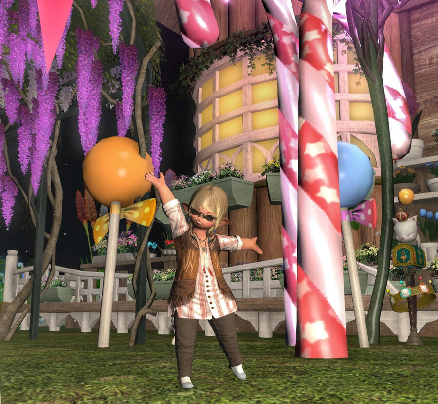 Where do I even begin?!?Tonight Khardis and Eltanin invited a bunch of us out to Dollhouse for some Rio-themed clubbin'. What?! I don't club. What the heck? Rio? Carnivale? PARTY?!?!? Maaaayyybbbeeee I'll put down my books.I scrambled around the house searchin' for anything I could wear. Let's see: my favorite carbuncle slippers, this funky hat, oooh swimsuit bottoms! And this pink top. Yep. DONE!I arrived first. Alone. Nobody I knew was there. Ugh...but I went inside anyway and was greeted by this beautiful dancin' lady. I wandered around, again alone and not knowing where I was going and found myself in an upstairs loft area. That beautiful dancin' lady yelled from below to make sure I was okay. Um, I was obviously not in the right area...I explored a bit more and heard the thumpin' of music from somewhere down below. So, I followed my big lalafellian ears to the tunes and found myself in magic. Lights. Music. And so many people dancing! Some in costumes, others in elaborate gowns or suits. And still no sign of my friends.I felt ridiculous. Carbuncle slippers? Who would wear carbuncle slippers to a club...but...but...but they're my favorite shoes. And it's Rio, right? RIGHT? Right! Okay...I feel a little better.Anyway, as I stood up against the wall looking for my friends this catboy, Yoko Taco, greeted me. Super sweet. Made me feel instantly at ease. And suggested the perfect drink to soothe my sweet tooth. I think he called it a Dollstar. Oh man, it was delicious!! Off he went with the promise of future beverages on hand should I need to order more.And suddenly there was Tsukiko, sitting on the couch nearby! YES! At least someone I knew was here. She wore this amazing coeurl-printed getup. Her fiance' was running late. Rude.He finally showed up! In an all yellow suit. Snazzy. As did Sif, wearing her typical black, and Sapphire lookin' dapper in swim trunks. Oh man, everyone looked incredible! We danced for a bit before Karaku disappeared and came back with cheesecakes for everyone. OMG. Delicious! More dancing. More drinking. And Sif's backside - damn that woman works out. Sometimes one of the best things of being a popoto-sized person is the best view in the house...I, of course, told her know I was leering.These two lalafell fellas (lalafellas?) joined us, Karaku got a little bristled around the edges, but they were just nice. They gave me a few heavenscrackers. That thing knocked me right on my ass. I loved it! AGAIN! (giggle)The night was amazing! Champagne showers on the couch (I hope that washes out okay) and dancing and Dollstars! Oh man, that bartender - what was his name? Curious something? Such wiggly ears. And great drinks!Suddenly this gal walked up to me and whispered into my ear, and the magic really happened! We were invited up to the VIP section! WHUA?!? Holy Popotoes! UPSTAIRS! Regna had shown up but mysteriously disappeared sometime after he donned his chocobo head (he may have had too much to drink?), so he didn't join us up there. But...M-A-G-I-C.Right before we headed up the stairs, this other gorgeous woman gave me cookies! I'm devouring them right now...cookies. booze. dancing. popping heavenscrackers. How could this night get any better?After my nervous little conversation with the man guarding the stairs, he let us right in with flourish and a bow. And the dancing continued!! Karaku had to head out to guide Opa to the club, so he missed out on some quality tunes. The DJ was hoppin'! And so were we!Sayuri, I think she's the club owner...I think that's her name - anyway - she made an announcement from the stage to head on down and she had gifts for us all. Everyone. Literally like everyone in the club. I marched my little lalafellian-bunbuns down there. It was a paint set!! And she encouraged us to make a mess. All over! We swabbed the decks of the VIP lounge like crazy. Yellow, pink, blue, black. But oh so much pink. I don't think it will ever wash out of my slippers. So worth it!I had another drink from Curious bartender-catguy. This time a Unicorn Kiss. Even better than the Dollstar!So, we're up there dancing and having a great time. When suddenly the bouncer walked up to me and whispered into my ear to ask my friend to put some clothes on. I must've turned as red as an oldrose. Me: they trusted me to bring my friends up here. And here Jakha had stripped down to his smallclothes. I apologized profusely and immediately poked Jakha to put on something...anything...He lamented that he had gotten "too hot." Ha. Noted. But thankfully he pulled his jacket on.Before the night ended, a voice could be heard over the music (barely) offering the sale of fish sticks. I could really go for some battered goodness to soak up all this booze. Once more found myself downstairs and wandering among the dancing folks. Almost got stepped on like twice. I walked around the club twice before I found him. Best damn fish...like ever. But that may be the Unicorn Kiss and paint fumes talkin'. But no, seriously: tasty. Brior Ronso was his name. Look out for him. Some up and coming culinarian business, there.Opa showed up like half-a-bell before the club closed. But it was good to see him dancin' and laughin'. That hair, though...it's epic.Someone was lucky enough to win a new mount. And at the end of the night, someone won 5 million gil. FIVE MILLION!! Imagine how many dalamud popotoes I could buy with that!!!So, it was my first time at Dollhouse. Definitely not the last....and the best part? The owner announced they may be making a Lallafell Den. WITH PILLOWS! Oh yeah, I'll be back.Dollhouse is amazing. It was wonderful to spend some time with my friends. And make new ones. I cannot wait to go back! What am I gonna wear next time? Oh man...gotta get to weavin'.