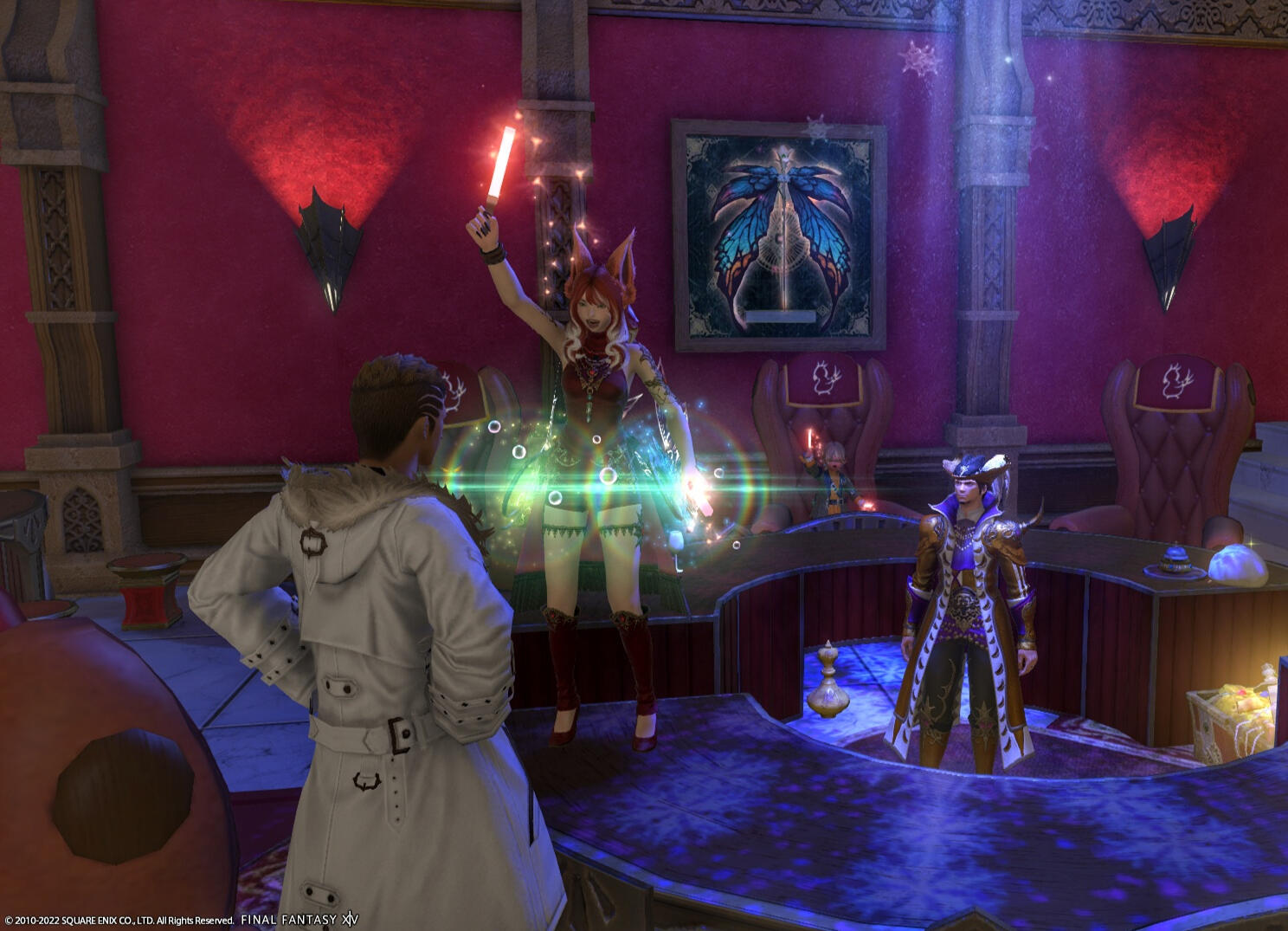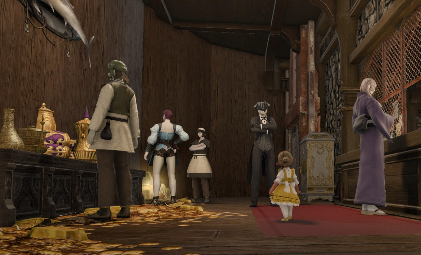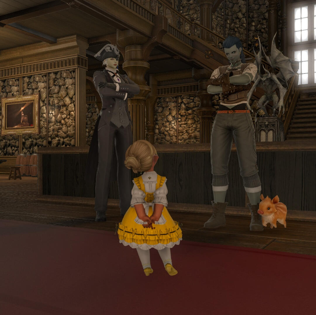 Dearest Journal,Ya know how much I love the Amaurot Hostelry and its staff. Well, I took Red’s advice and invested in a venue I love to support! Not only did I drop 5,000,000 gil but I got to spend some much-needed time with friends. AND they’re gonna name a swiving drink after me! Or something like that. I’ll leave it up to the staff…