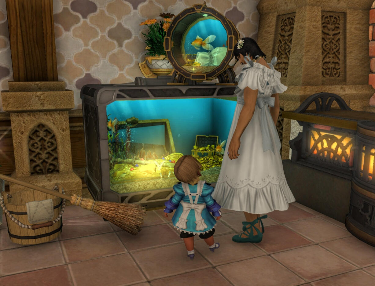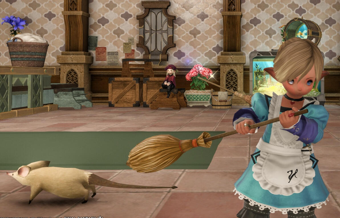 Before I could answer, Altanai popped into the apartment! Unannounced, but always welcome, I invited her to make herself at home, grab some tea in the kitchen, and wait while I conducted business. I made sure to enunciate the word "business." Mr. Rho smiled in greeting and we got back down to it: the brass tacks, Journal! Gil!He offered to pay me 25,000 gil per week. What? Insanity. I countered with 15,000 gil for all of the services discussed.Nay. He would not budge. Insisted that the extra 10,000 gil per week could be considered a tip, if it helped me accept it.I tried to speak some sense to the man, but he only laughed. Let me know that he had earned that entire sum in just one day of playing with fates and dice. And, Journal - he had let me (and Altanai, by proximity) know just how much he won from House of Virtue one evening.There are so many zeroes in the figure, I dare not write it down for fear of running out of ink. And Altanai choked back a chunk of sandwich from the kitchen.Accept it, I did. Oh my. And he paid in advance. For twelve weeks. TWELVE WEEKS! By the gods!A coinpurse full o'coin landed on my shipping crates - I mean desk. He also handed me a linkpearl so we may better prepare and plan.Step One: We plan a visit to the Shirogane house. I shan't be cleaning that day; it's purely to get a lay o'the land, meet the soon-to-be-Mrs. Rho, and learn all about his fish.Step Two: Weekly visits to the Rho Estate. And due to their - erm - richly manner, I shall be wearing my Secret St. Nym gift: my official maid outfit! One must needs look the part of the rich and famous. Well, I don't know if Mr. Rho is famous, but he's indeed rich.Oh! And my small rat now has a name!!! Alexander named him "Nibbles." I think it's perfect!!
