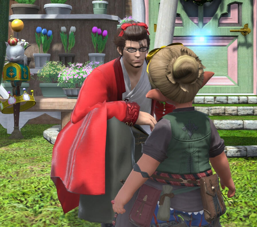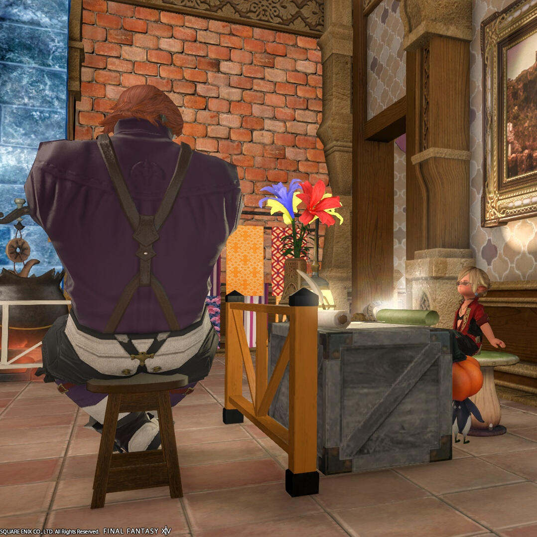 Well, it finally happened.Detective Dayfield and I were finally able to reconnect in the flesh! I was able to deliver to him his laundered goods, along with a gift to brighten up his dank and dark office.When I first arrived, he was not there. "The door is always open," he had said in the past, so I walked right in. Shortly, he followed, almost bumping into me and covered in bloodied armor; none of which he says was his. I gave him a respectful moment to change while I sat on the couch, taking in the redecorating he had done.We caught up before getting down to brass tacks and business. I discussed the Sea Dragons having returned to the Ruby Sea, he mentioned that work was scarce and he may be moving on toward mercenary work. Both of us had an aura of regret and sadness.But that's when I remembered: I brought him the gift! I had grown some red arum and plucked a bouquet just a bell sooner. Aether travel makes tasks like this so much easier, the flowers were fresh, and it's worth the cost in gil for speedy deliveries. I also picked up a small oasis vase. We spent the next several minutes searching for just the perfect spot to house them: atop a barrel in his office. It most certainly brightened up the place, and brought a sparkle to his eyes.My clockwork cart obediently followed us into the office, full of his folded laundry. I was nervous as he was my first actual paying customer. And I had recently used my laundry-pot to dye some personal belongings cactuar green...what if there was some transference? Anyroad, as he began to inspect his clothing, I noticed my mending work seemed rather...childish: thick in stitch and bunched. He didn't seem to notice. And as a shirt literally crumbled to dust as he touched it (by the gods!!!! THE HORROR!) he smile did not wane. Again, he seemed not to take notice.He gently placed the pile of clothing aside and smiled, "You did an excellent job, Zim! Better than I could have myself."I could tell he was only being kind; my lack of skill was evident. But I didn't let him know I knew...that would just be rude and awkward!I thought my days of working for the Detective were done then and there. That he'd wipe his hands of me and count his losses...but I was wrong!He advanced yet another large sum of gil, which I understood to be a burden since business hasn't been booming as of late, and asked me to find the most beautiful bracelet in all of Eorzea! He intends to present it as a gift to a lady-friend! And he instructed me not to spend all of the gil on said bracelet...and to keep the rest of the fee as payment for my services.Well, little does he understand, I cannot! That is too much! It's been several suns and I've already procured the most spectacular piece of jewelry! And I must needs do some accounting to figure in my fee, the cost of the bracelet, and the sum of aether travel and return to him the excess gil.We have, as of yet, to reconvene for the delivery.But do you know what was the best part? Even though my laundress skills were...sorely lacking? He called me a "good friend." No one had ever before given him a gift of a bouquet of flowers. "A good friend." And that makes my heart smile...