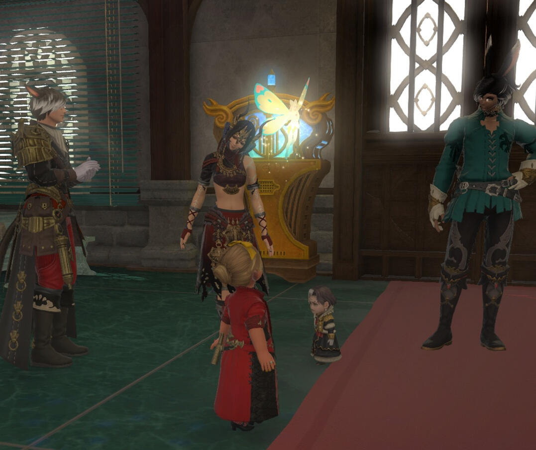 Dearest Journal, Remember that glove I’d won fair and square off the hand of Alexander Shimizu? Well, I had set a date to meet Mistress Urleaux at her apartment in Ishgard to discuss business. If you recall, she stated she was an artisan of alloys as well as wood. And, besides, it was high time we caught up as it’d been quite a while since we’d met…