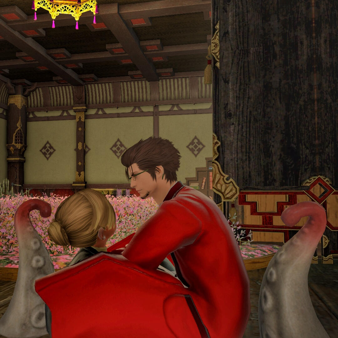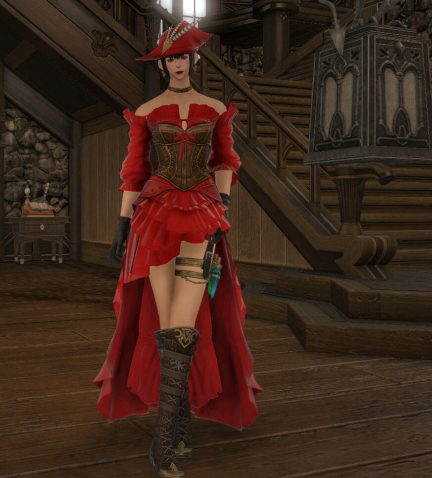 Again, the Herald ads bring promise of adventure and newfound friends.Last eve, I contacted Mr. Rho via his link pearl and was advised that Madame Freyja was feeling under the weather and we would postpone my reading. All in all, I would want her to feel at her best.Rather, I opened the Herald and perused the texts for any wonderful adventures that might await one bored and lonely Lala. I assume Zototo is off on some grand and dangerous mission as I cannot hail him. By the gods, pray he isn't responding because he is incapable of answering? Banish the thought!There! A small hostelry in Shirogane, once more promise o'new cultures of the Far East. Free food and drink? What? How can one resist? I figured with the holiday of Valentione's Day looming, I would don some red.And, I mean, the food truly wasn't free as I had to pay the toll of the aethertravel, and the whoozy head afterward, but I found The Amaurot Hostelry without a problem.Ol'Farty, whom shall from this day henceforth be known as Farfnir, followed his nose and took me straight to their venue.