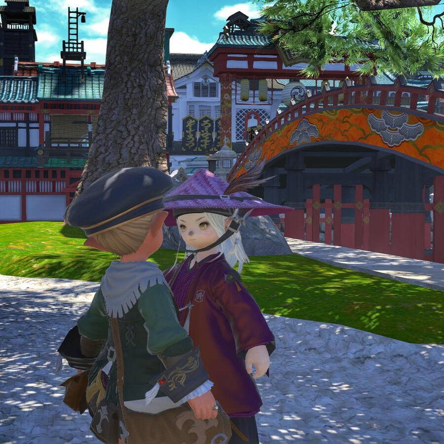 Today we all gathered over a light breakfast at the Inn before heading out on a ferry ride to the isles. I'm surprised, Kasen actually brought us to our destination, despite taking a somewhat dangerous route.There were large bird-like creatures that Senpai narrowly avoided injury. At one point we all had to flee to safety! And there were swarms of bats! So many bats! All I could do was toss pebbles at them in the hopes of shooing them off of Kasen! The others more capable in the art of fighting were able to dispatch the vermin. Karaku and Tsukiko were safe in the back of the group. And I was able to collect more pebbles among the broken cobblestones. My pouch is full!Kasen also led us to a small settlement, I think it was called Hoghorn Hut or something like that. Anyway, the small tavern had a stove which warmed my heart and hands. It's design held the attention of Karaku who mumbled something about "captured flame." That Au Ra has so much yet to learn...We made it to the temple that was our destination: twelve alcoves, one for each diety (I think), lined a courtyard. Most of us paid our respects and made offerings to each in the hopes of obtaining their blessings. Kaine offered meat from the fresh kill. I had my popotoes. And I think Ayame laid pearls down onto each alcove. I saw Senpai at several, but am unaware of what he offered. Unfortunately several portions of the walkway were flooded, the water was cold, and my tights were soaked. And Kasen (daresay I am beginning to trust him more) was kind enough to lift me over a small wall so I would not have to trudge through the water again.The best part? Karaku and Tsukiko announced they are to be wed!! Immediately! Many of us made our way back to the market via the ferry to buy outfits fitting such an occasion! I am so excited! I have picked up a warm coat, with fur-lined sleeves, and it's the color of my beloved popotoes! Hopefully, it's comfort will soothe the cold in my bones. I also found a skirt that goes well with the brass threads of my new coat, but am not quite sure if that is what I will wear. It seems a bit flashy, but my options may be limited to what's available in the market with such short notice. A local flower vendor sold me a dried oldrose for my hair...and I love it! I may never take it off! And my tights are ruined from the venture through the water; I may have to pick up some new ones. But I am oh so low on gil. I wonder if they'd trade for some popotoes...?But the big dilemma? What to gift those who saved your life? I must needs give it special thought.Oh, and before I forget, Kaine (our new chef) makes the most delicious popoto salad!