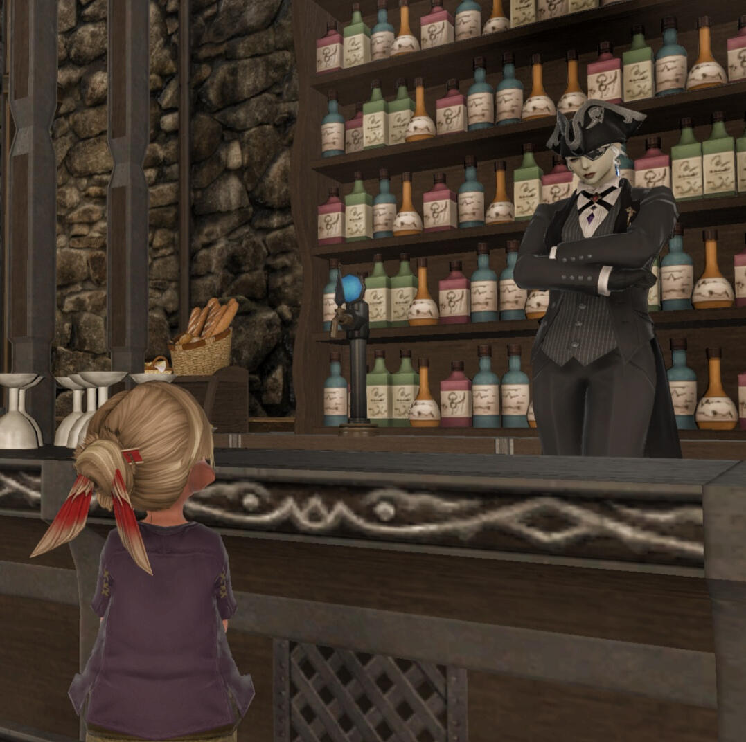 Onward to the House of Virtue in Goblet! The House was slated to open in less than a bell! So, to Ul'dah we went!Guess who I happened to spy once I finally found myself before [M]ayberry's](https://mayberryminami.carrd.co/@blank) establishment? Mr. Alexander Rho! He was busy talking to a woman, but took a moment for a bow and a gentle greeting. He had needed to partake o'gambling himself that eve.Myself, Altanai, and Nyx took a seat at Mr. Rho's table. And now rather than gambling against him, we all sat on the same side o'the table! That Hyur - by the gods - at one point bet 1,000,000 gil AND LOST. And didn't bat an eyelash. Not one flinch.I can't even.Nooj, our dealer, explained the bar hosts a "Kamikaze Challenge": a series of 8 different shots of various alcohols. Each one, a test of wills and constitution: if the drinker can partake of all eight without - erm - passing out or vomiting or losing oneself to the libations: you get on the House of Virtue's Wall of Fame! All for a mere 80,000 gil.Well, I thought, I could lose 80,000 gil at dice...or lose 80,000 gil, get drunk, and possibly become FAMOUS. What would Zototo do? FAME!I bade my friends farewell and stepped back to the bar. Part of me was worried the rather large barkeep wouldn't take my request seriously, but aye: he did!The challenge did not bode well: I lost. BUT I did make it all the way to the last shot of liquor before I lost my senses. It was the bubbles - the damn champagne went straight to my head. I was so close: so close to fame I could taste it - or was that the third shot o'pure vodka?Anyroad, Arnaud showed up, too! And brought G'erran with him (I have yet to journal about that encounter!) - They and Altanai joined their own rounds of the Kamikaze Challenge!